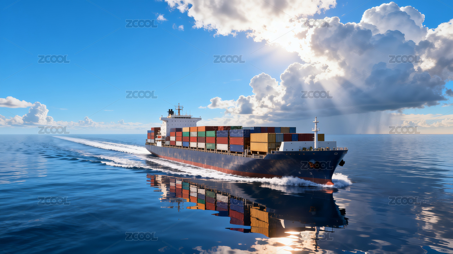 货物,邮轮,物流,满载,海洋,水,倒影,天空,背景,壁纸