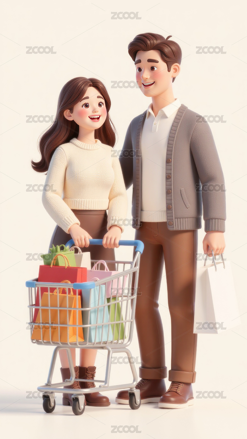 拿着购物袋的年轻男女人物插画3D插画
