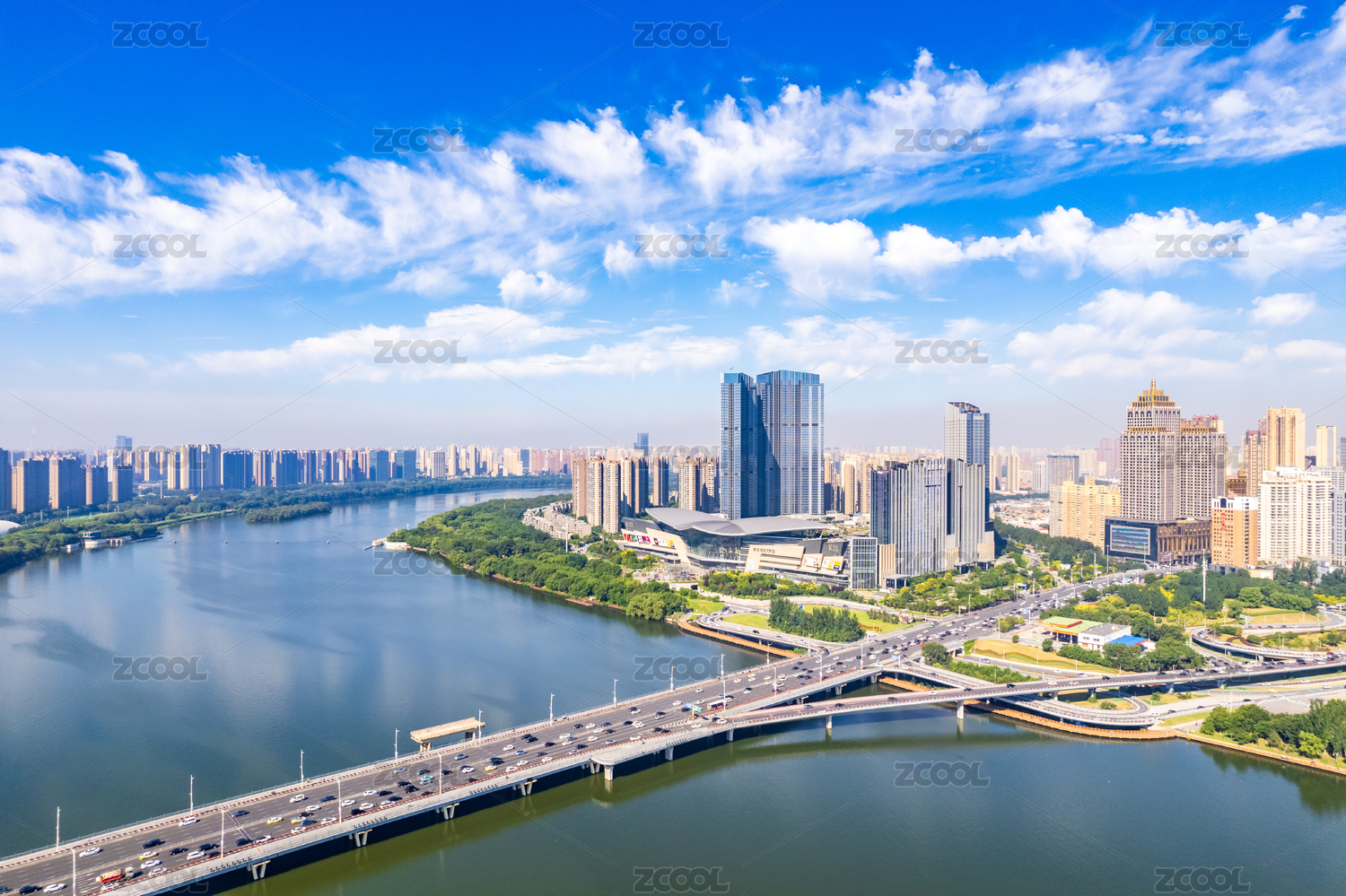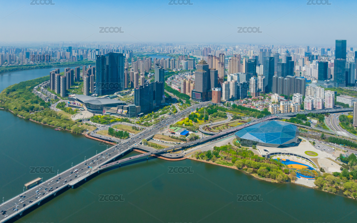 辽宁沈阳城市建筑浑河大桥盛京剧院航拍