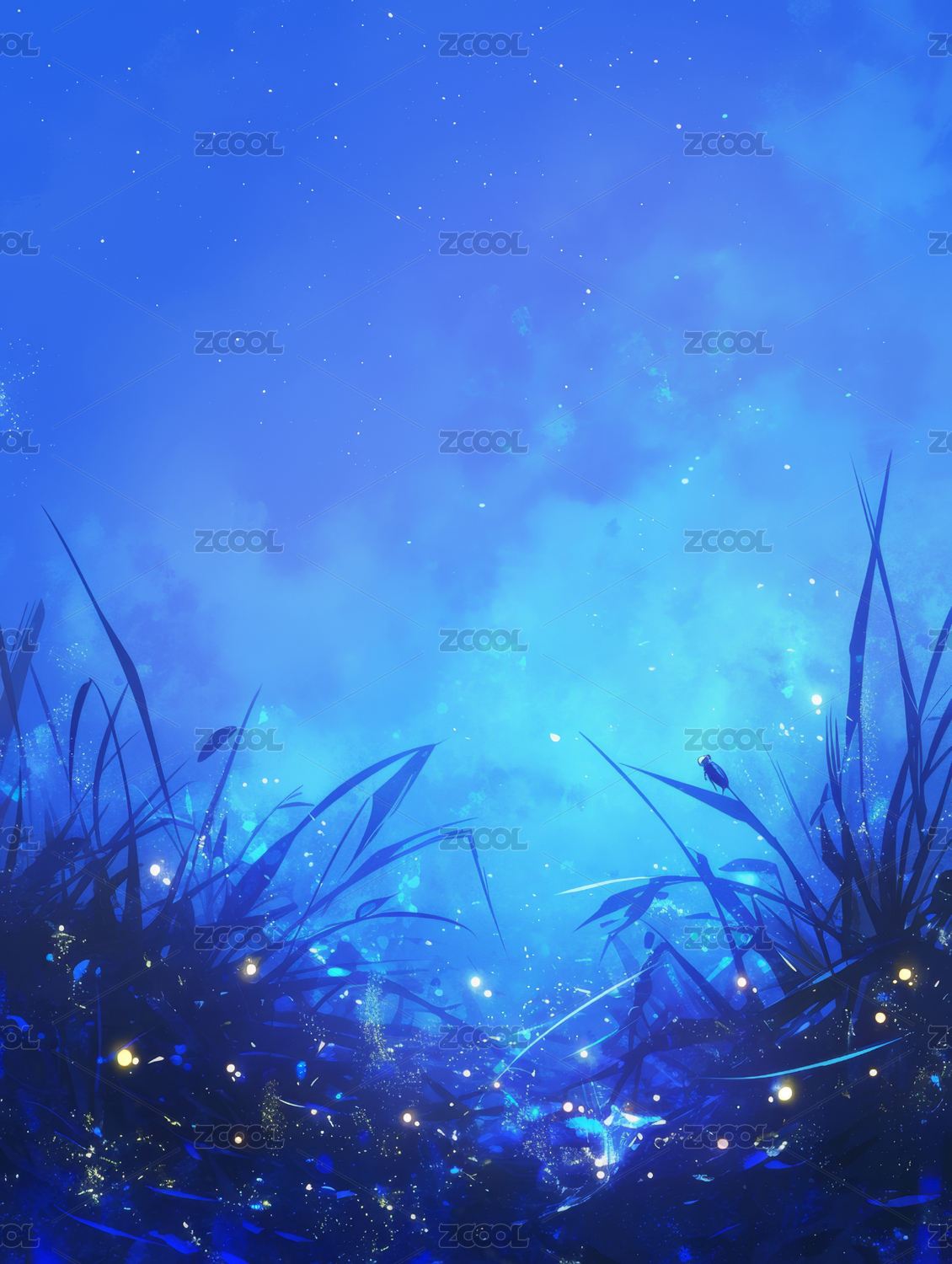 蓝色小清新插画背景壁纸