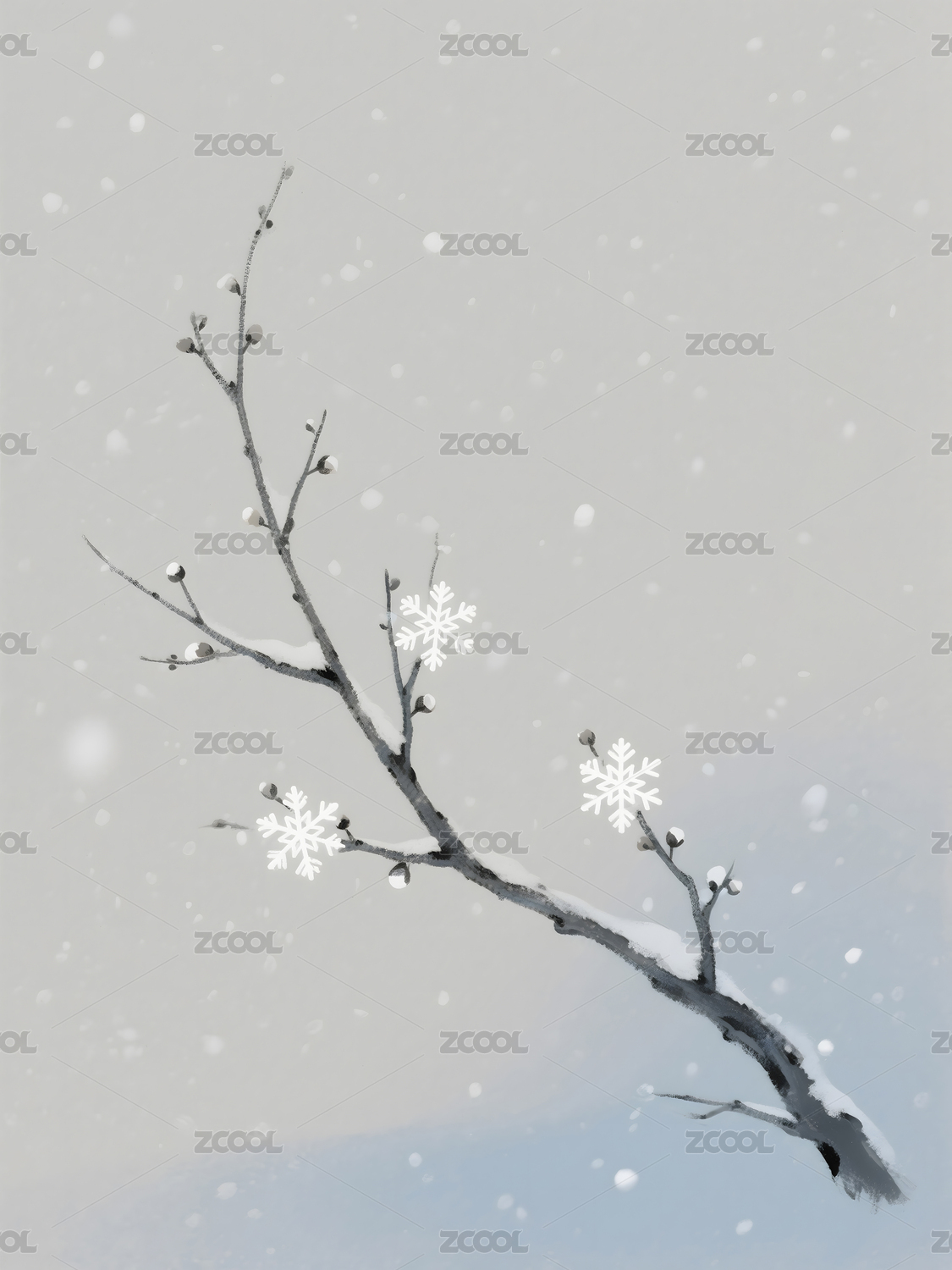 雪梅国风传统水墨场景