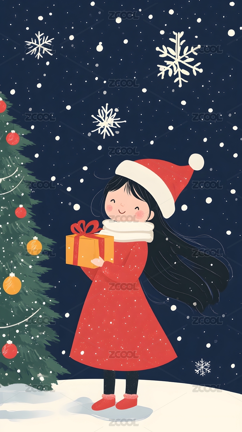 礼物,圣诞,下雪,冬天,女孩,圣诞礼物,过节,圣诞节