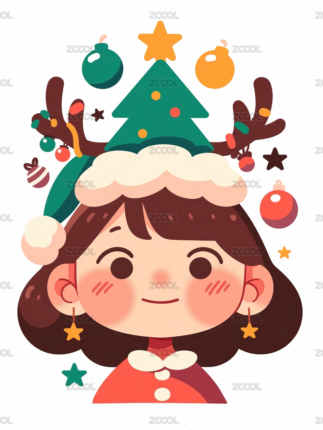 穿着圣诞老人服装的女孩在装饰圣诞树