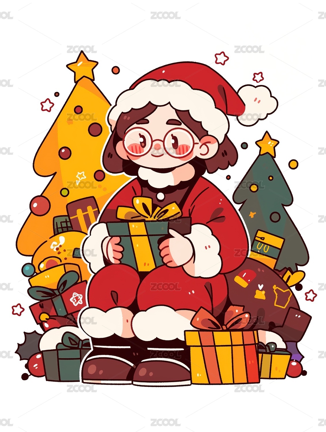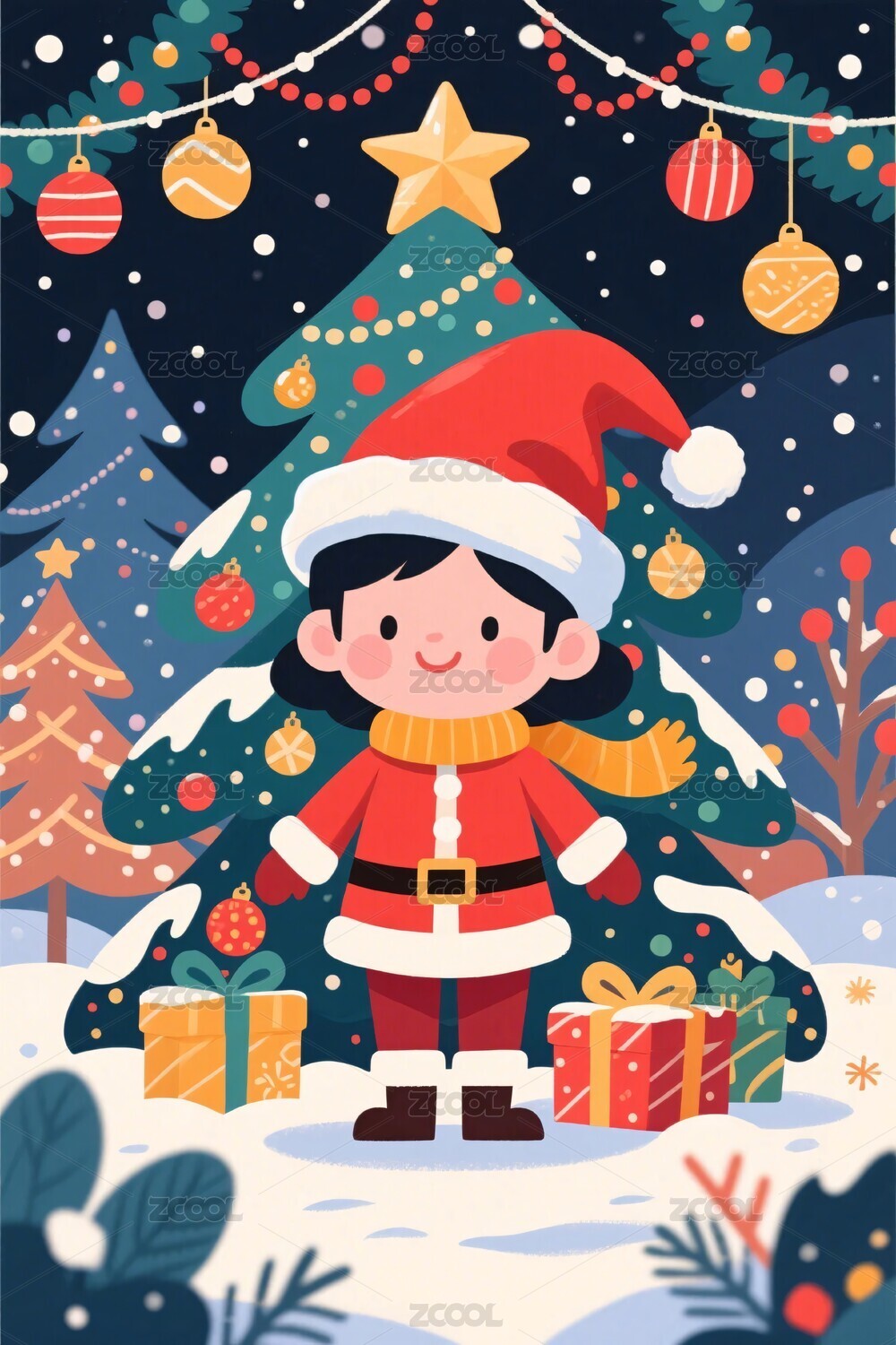 圣诞节装饰背景圣诞老人圣诞树冬季雪花插画