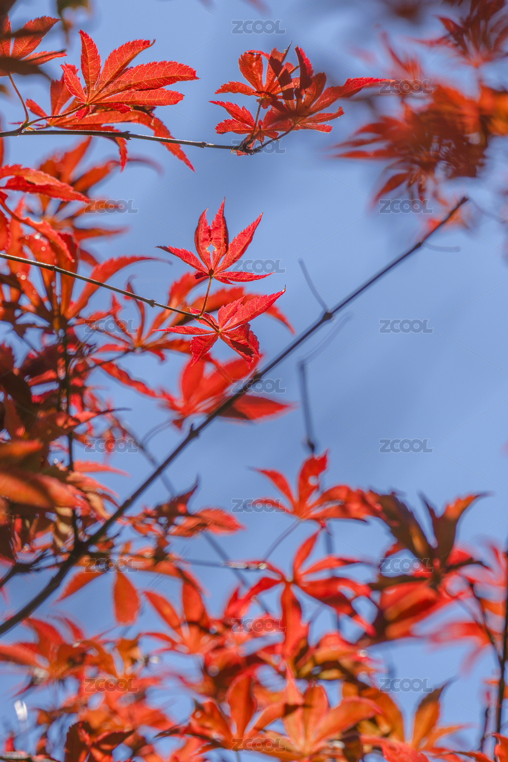 秋天红叶霜降枫树枫叶林,自然风景天空树林