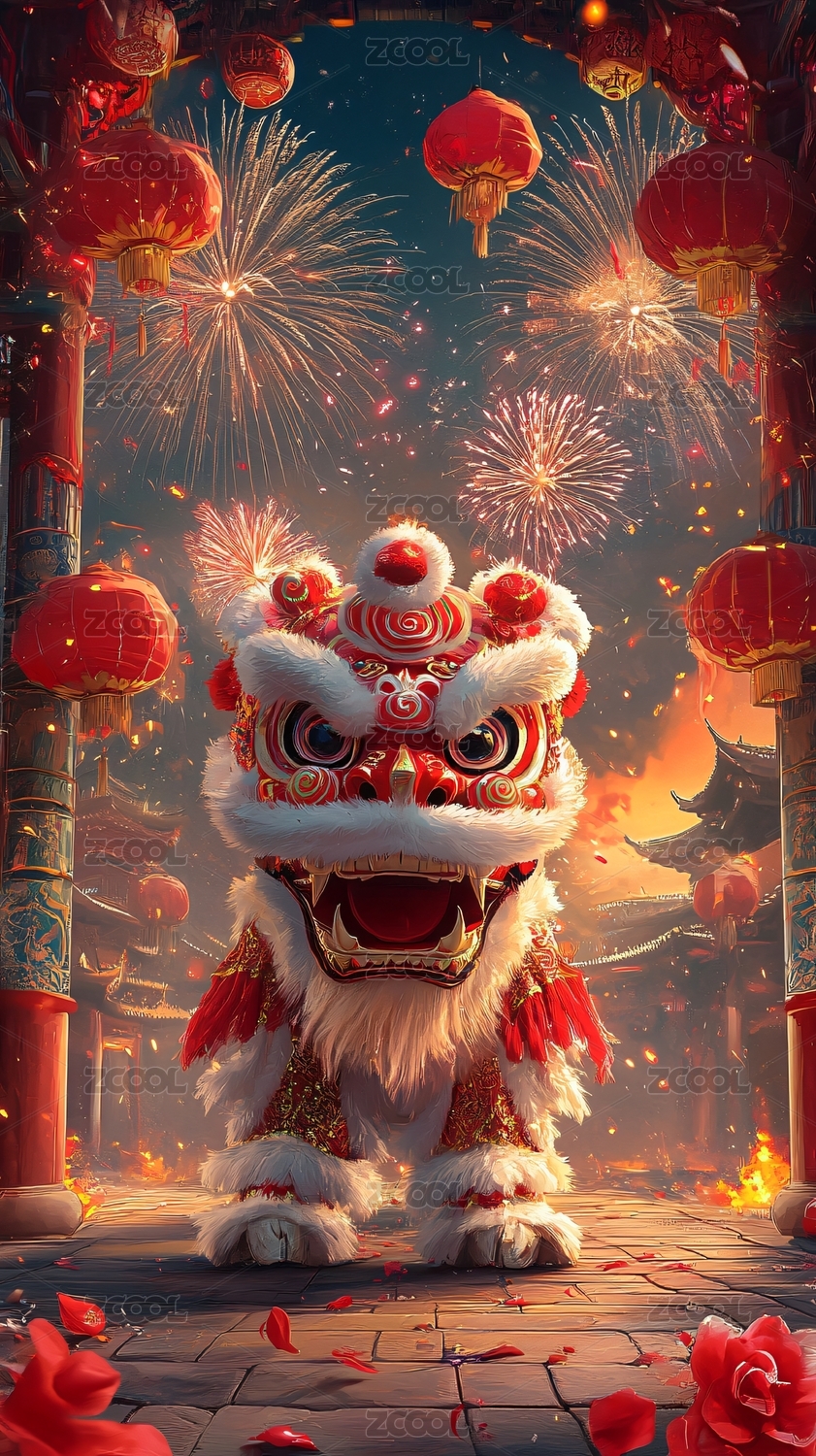 舞狮,新年,春节,中国风,传统,文化,喜庆,节日,庆祝,灯笼