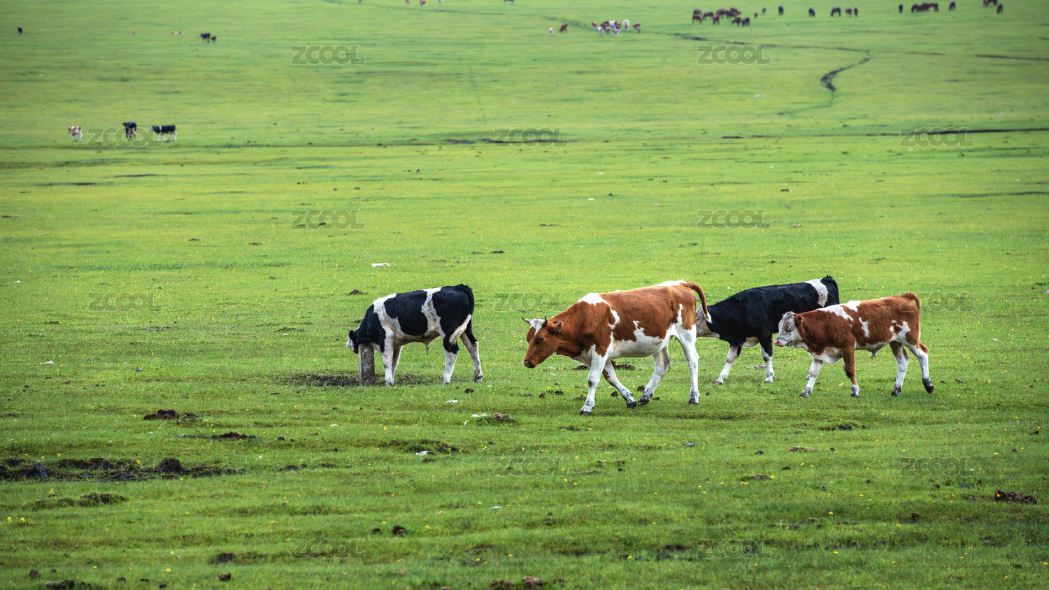 草原上吃草的牛牛群
