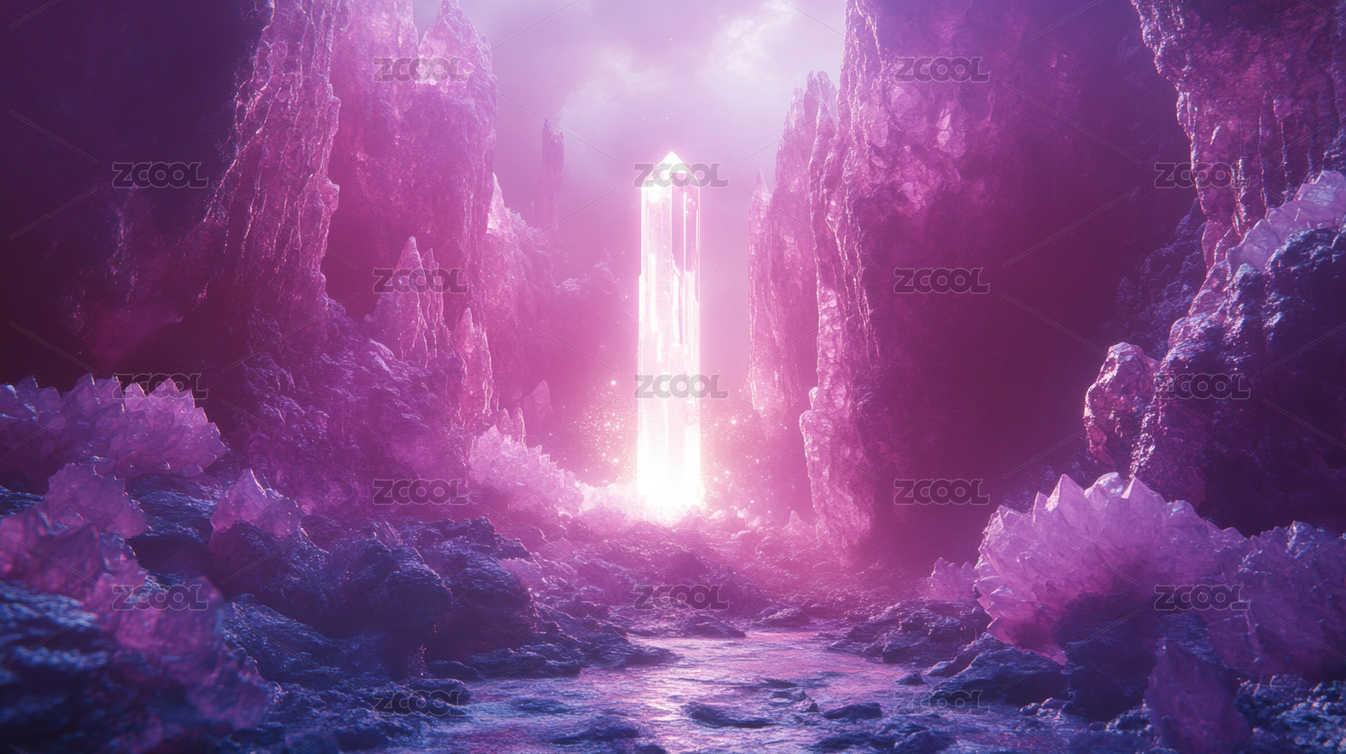 科技科幻洞穴中的城市建筑3D卡通立体插画