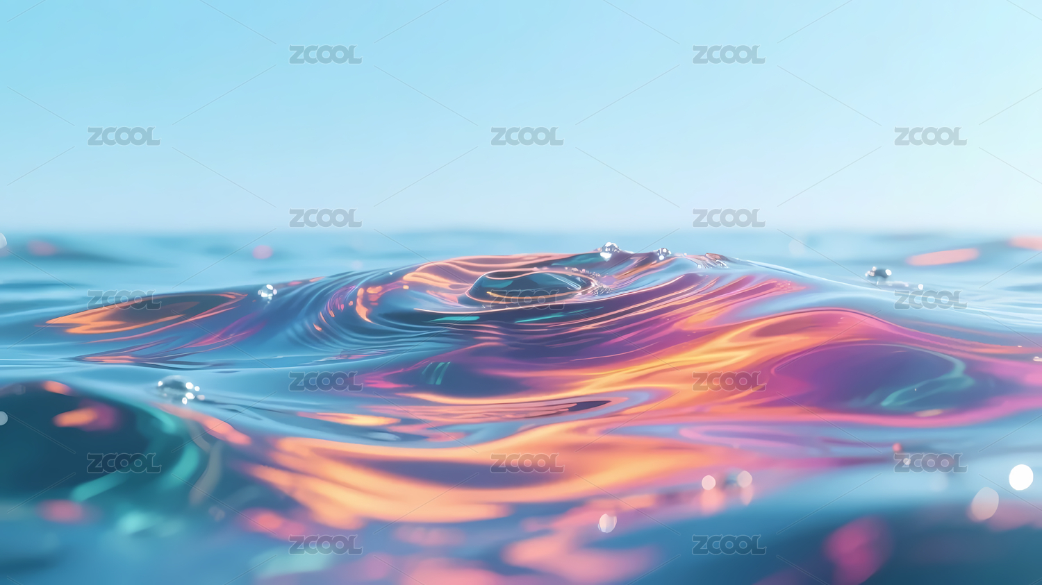 蓝天下色彩斑斓水面