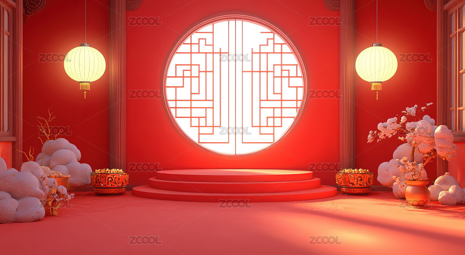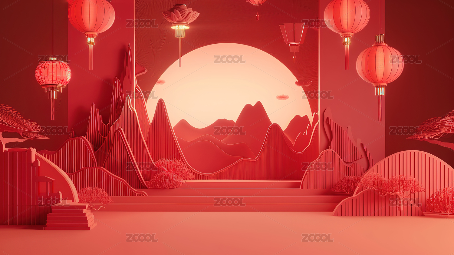红色中式节日舞台场景