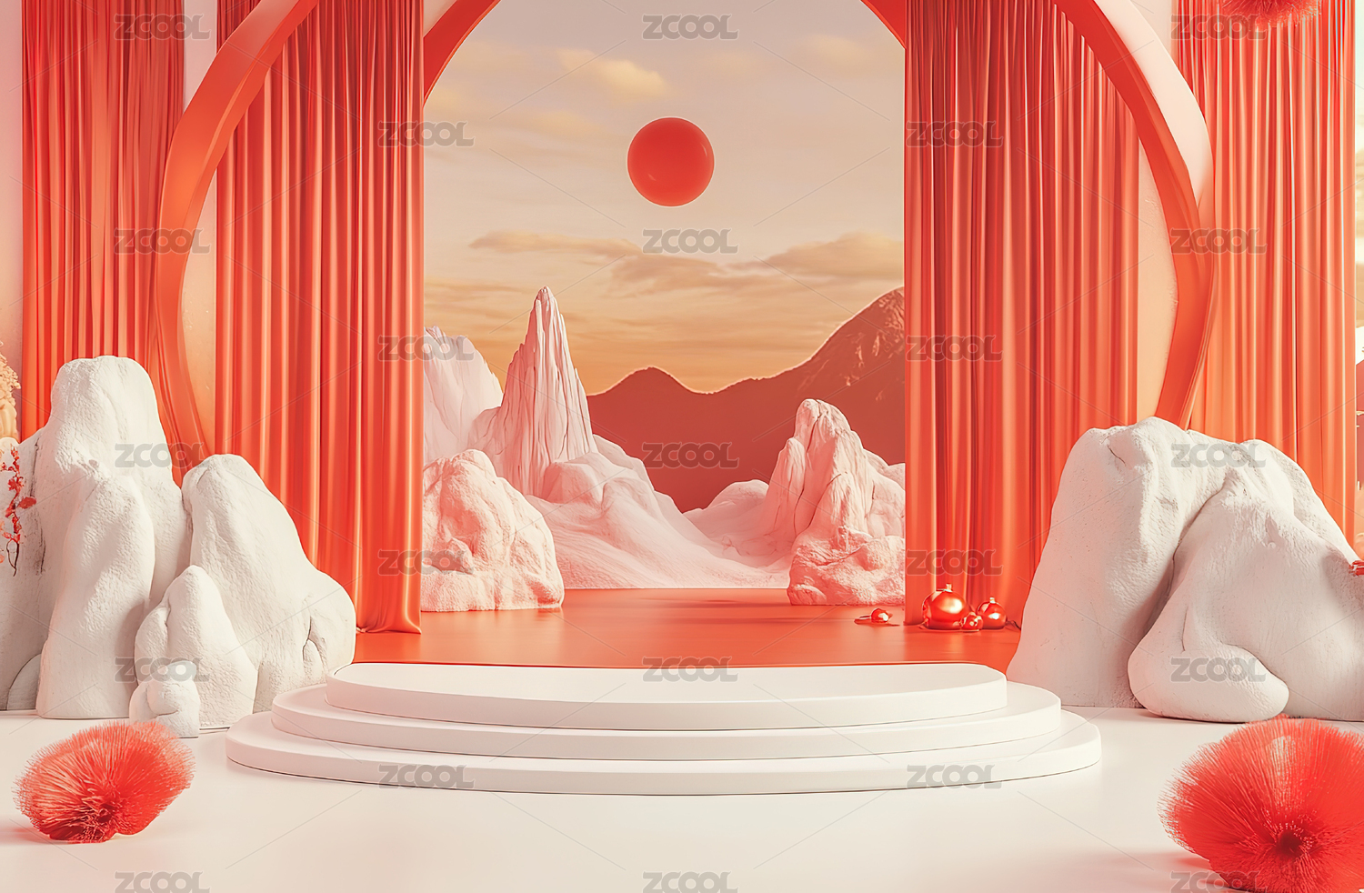 3D红色高山圆形电商产品展台