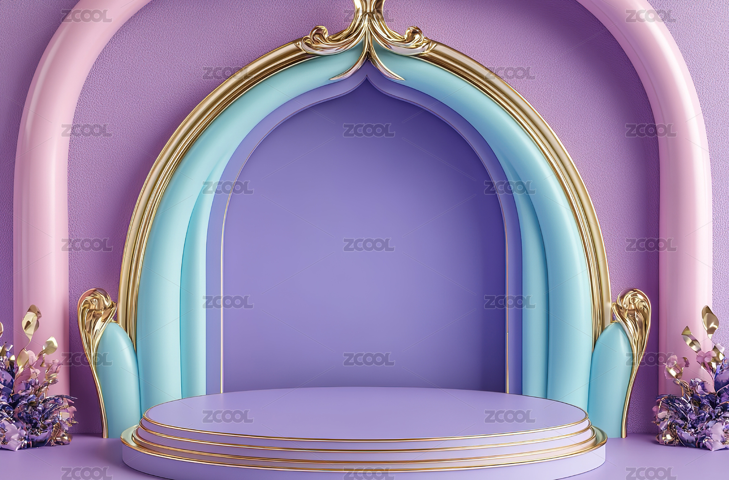 紫色背景下的蓝色装饰特写镜头