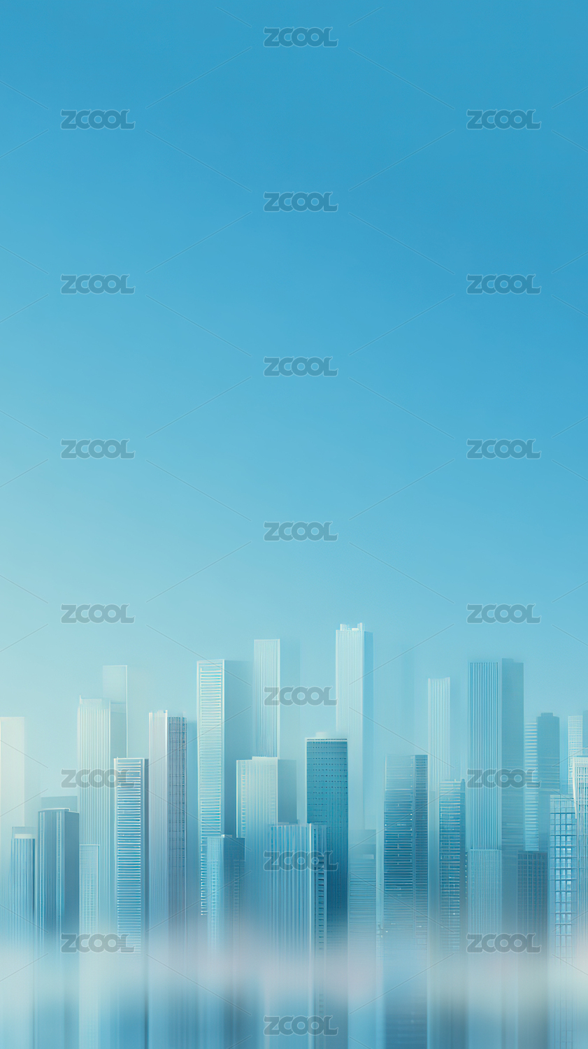 极简风格蓝色城市建筑