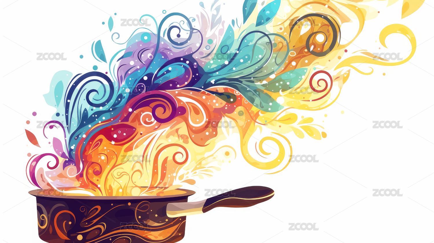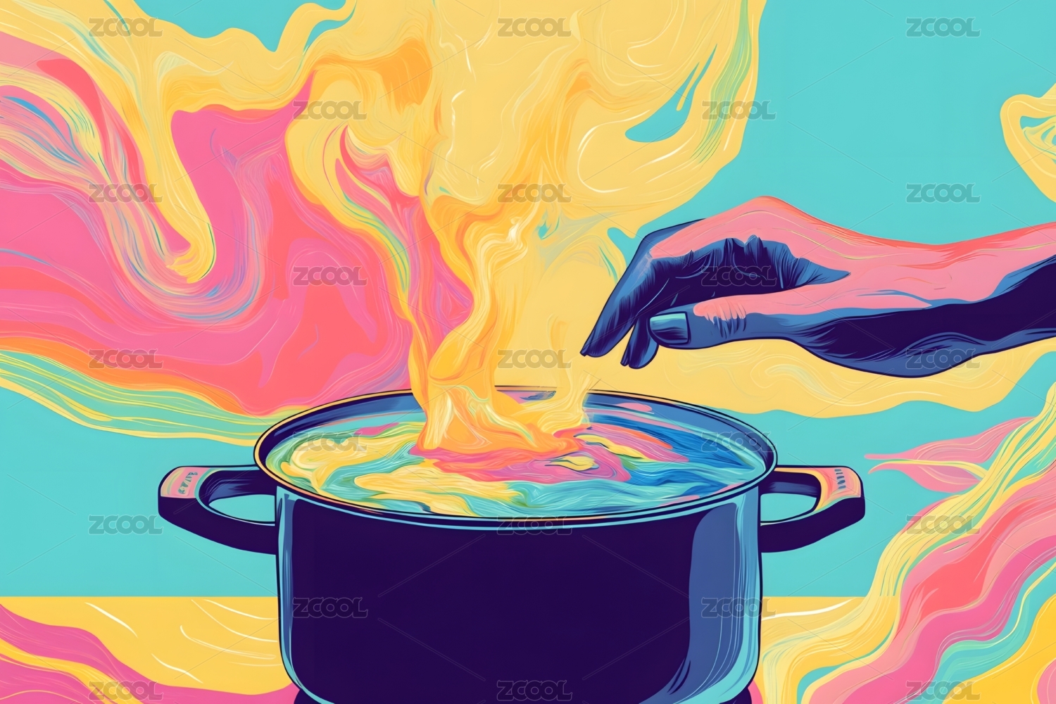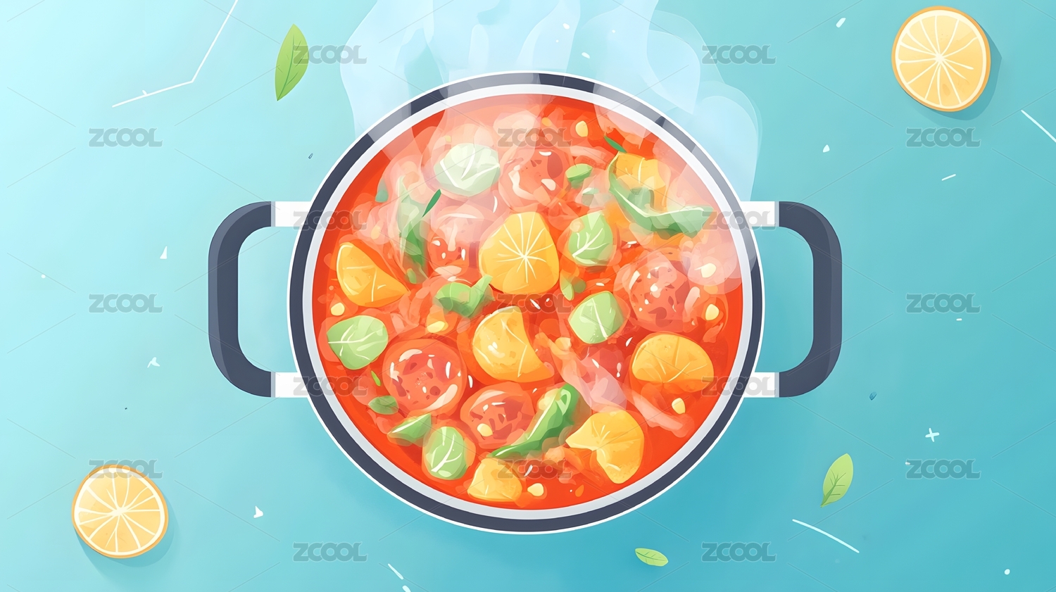 卡通,插画,美食,创意,艺术,视觉,质感,汤锅,光影,色彩