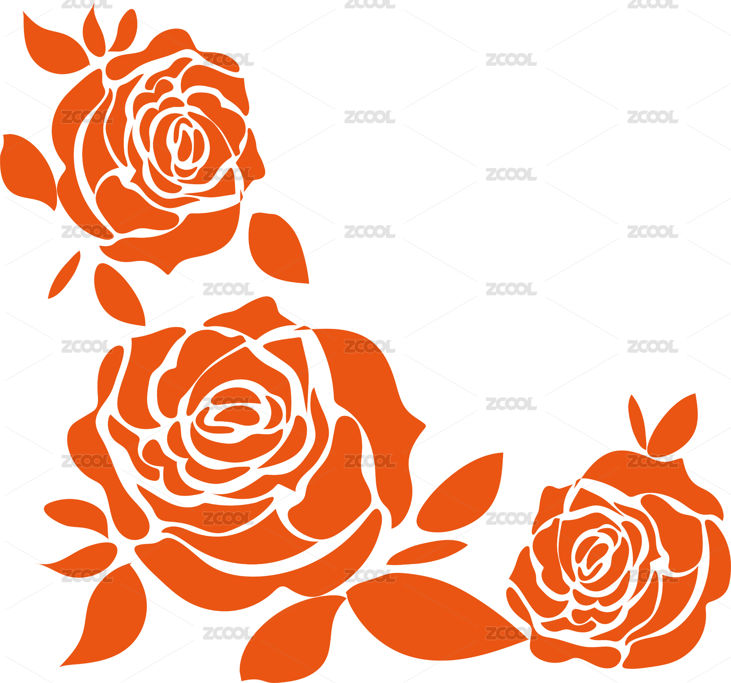 黑白线稿矢量玫瑰花装饰插画鲜花图案
