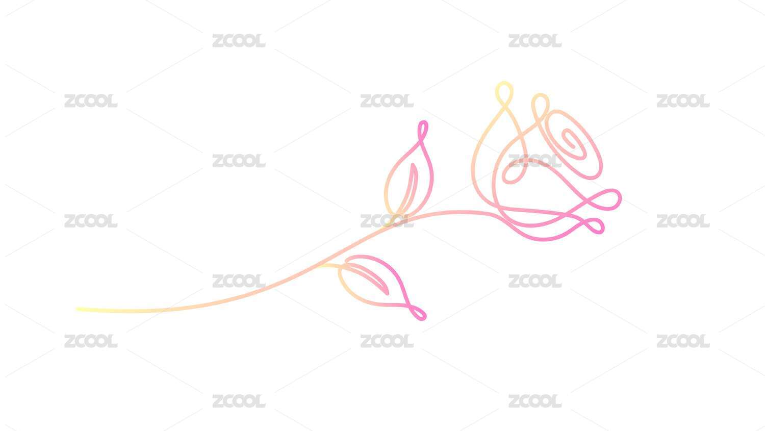 金色玫瑰花情人节浪漫轮廓白描线稿图案素材