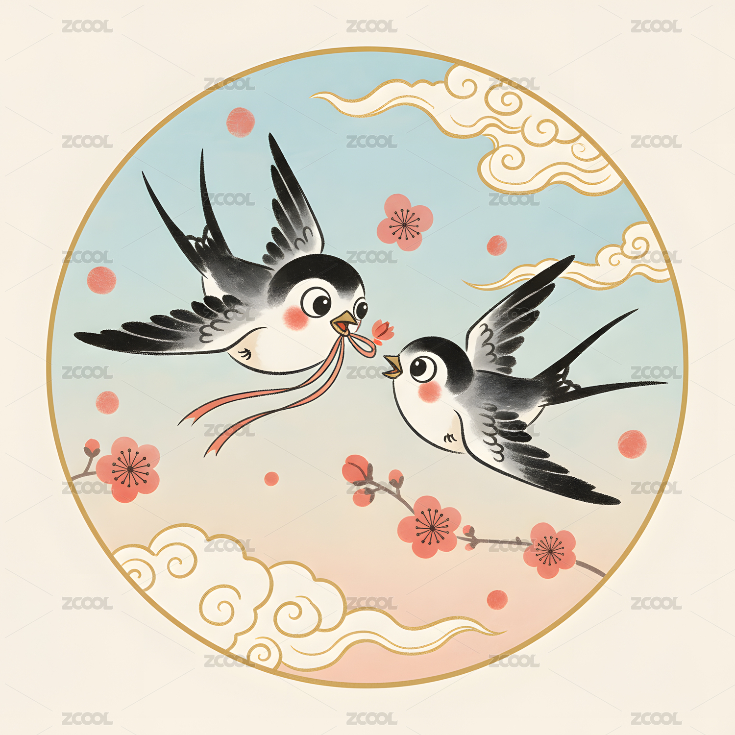 国潮风插画-春天的燕子