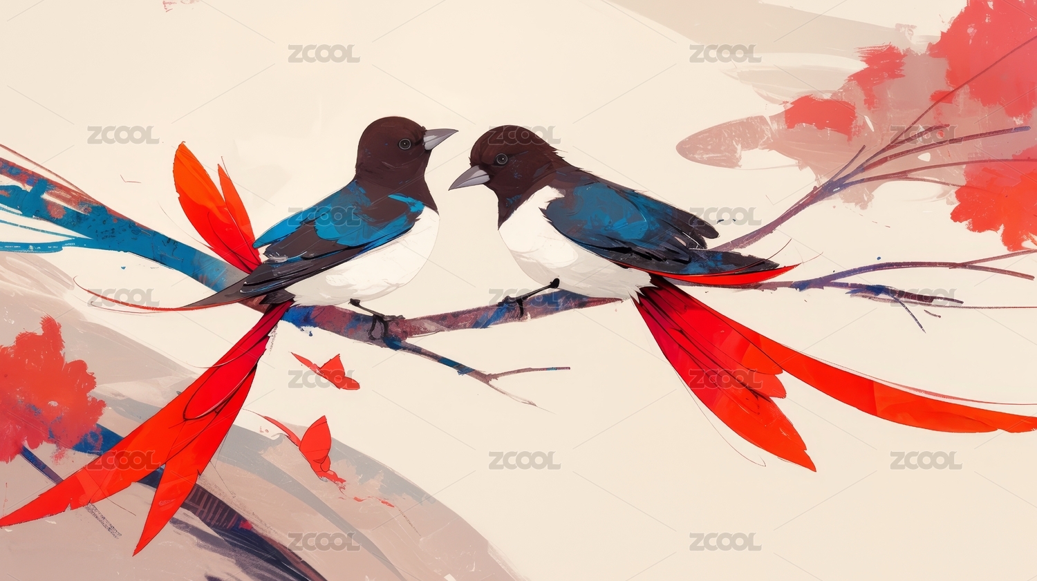 燕子,喜鹊,浪漫,喜庆,海报,包装,插画,对称,花朵