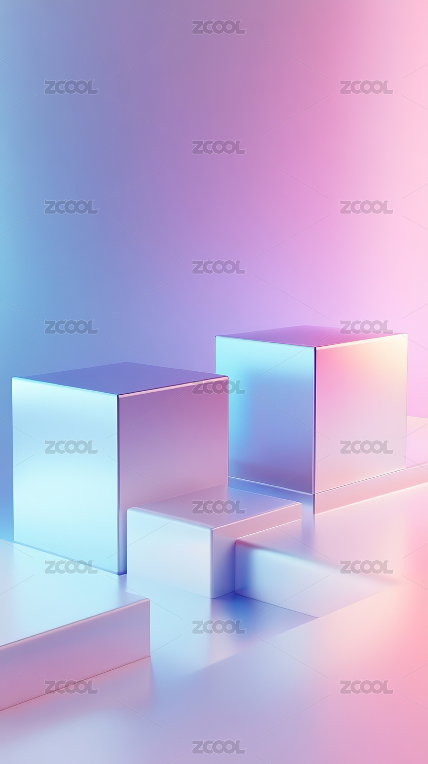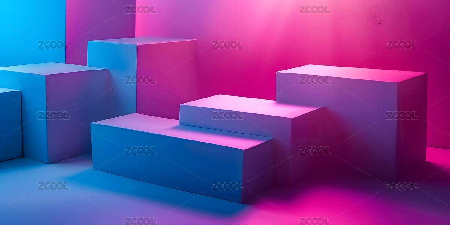 抽象粉色和蓝色渐变平台的极简3D渲染