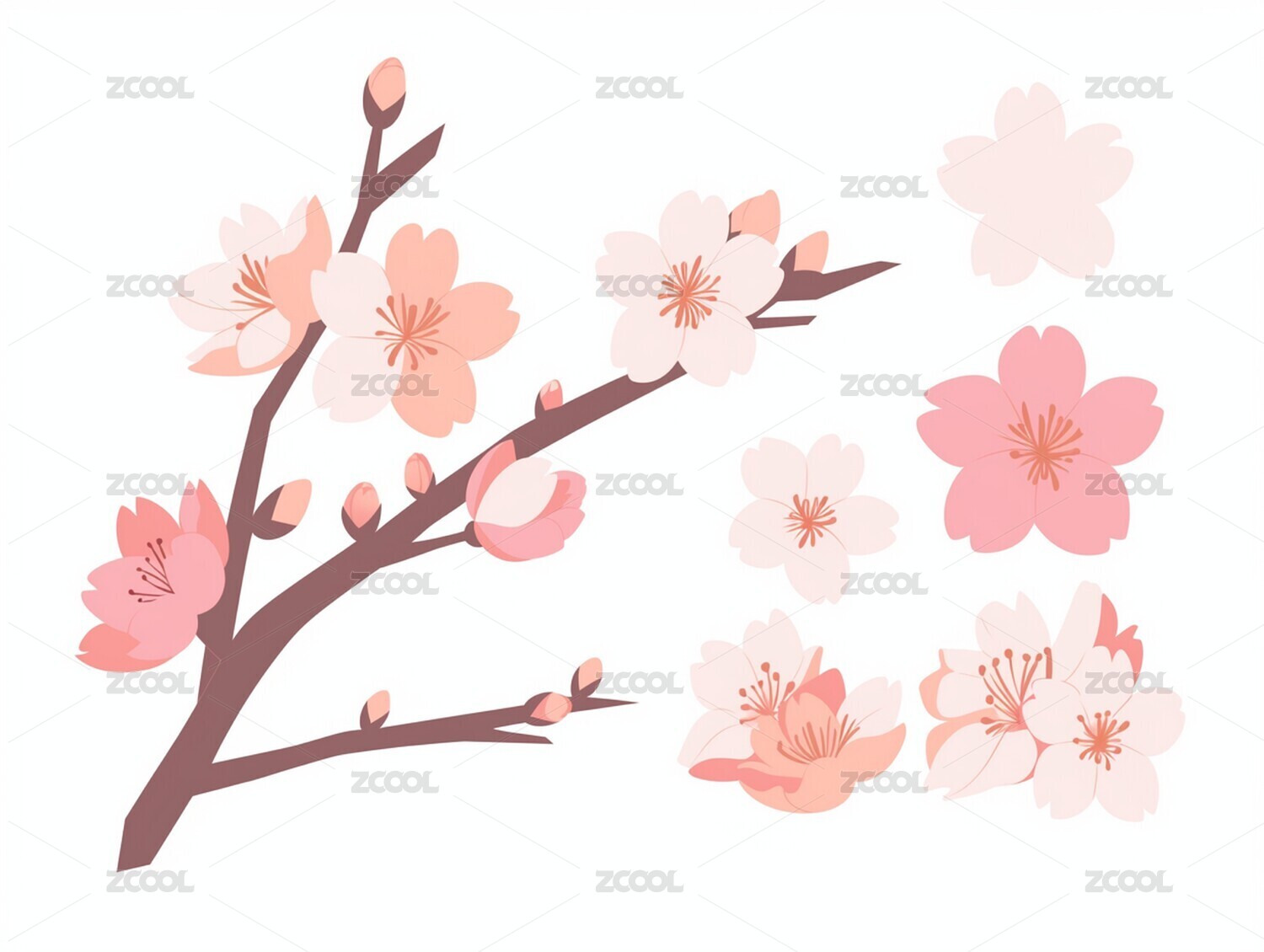 春天 朵朵粉色桃花 唯美卡通春季装饰元素