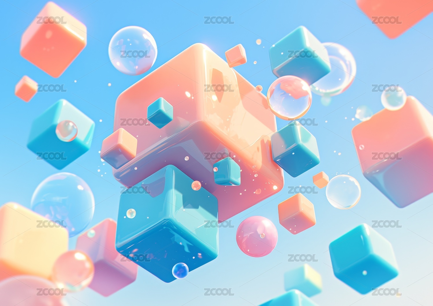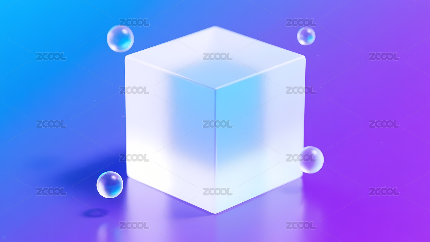 蓝色立方体与透明气泡