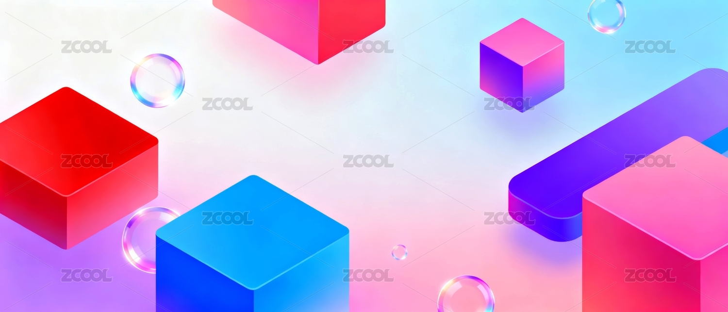 渐变粉蓝立体几何背景
