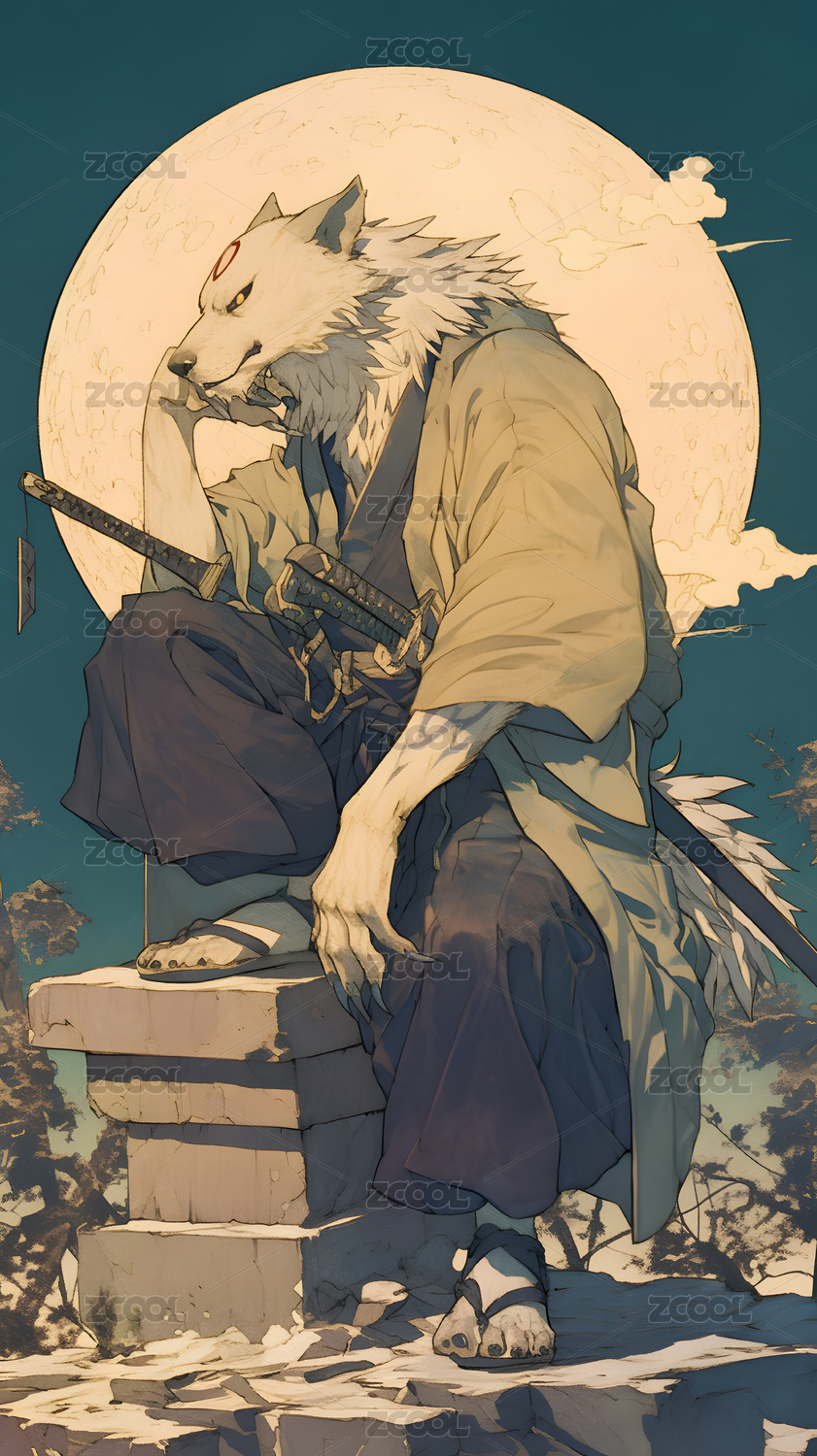 日漫白狼卡通插画