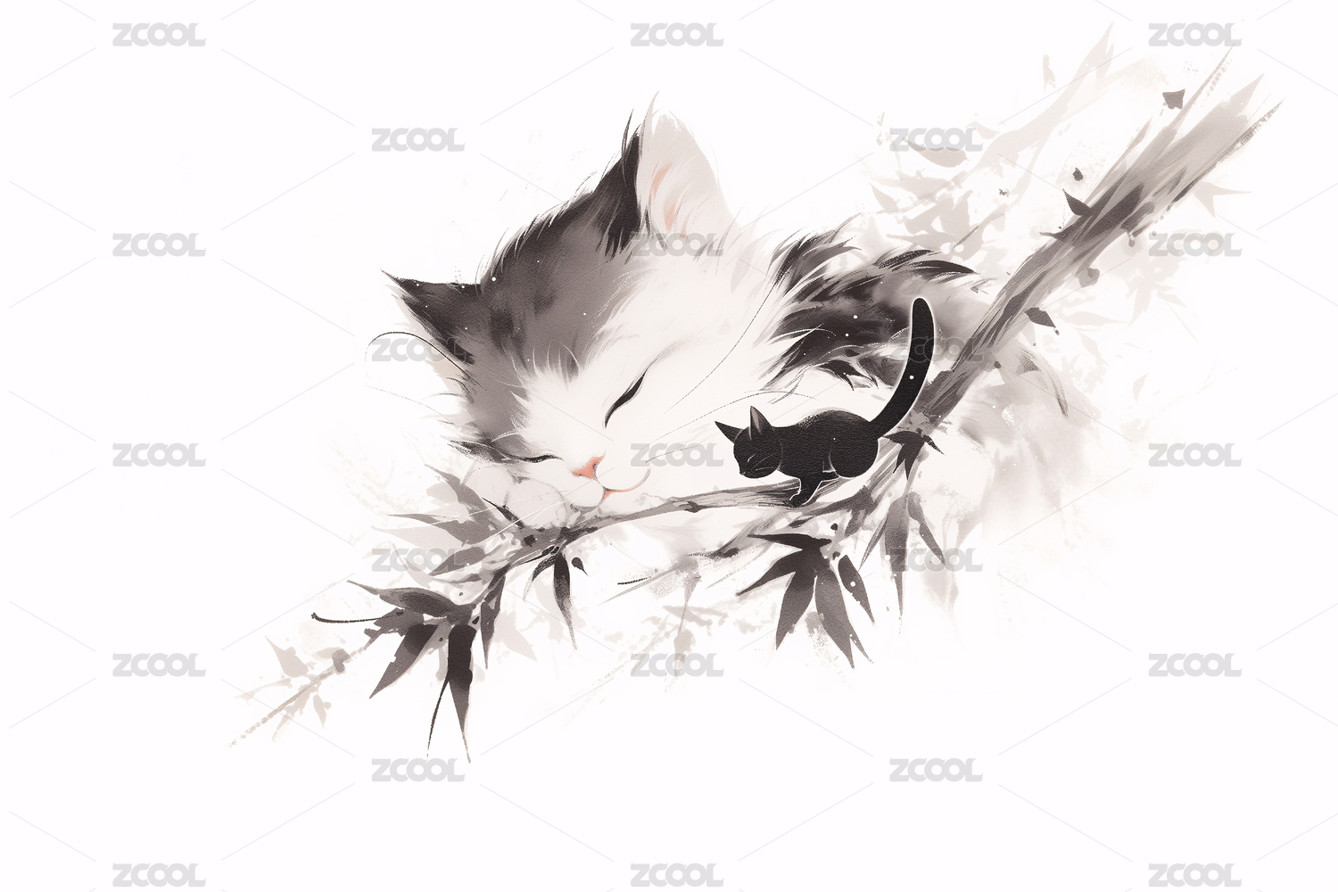 传统水墨中国画猫