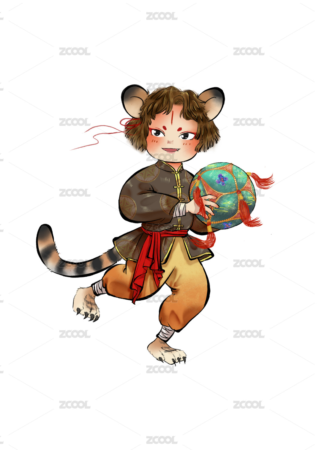 十二生肖守护神寅虎国风拟人