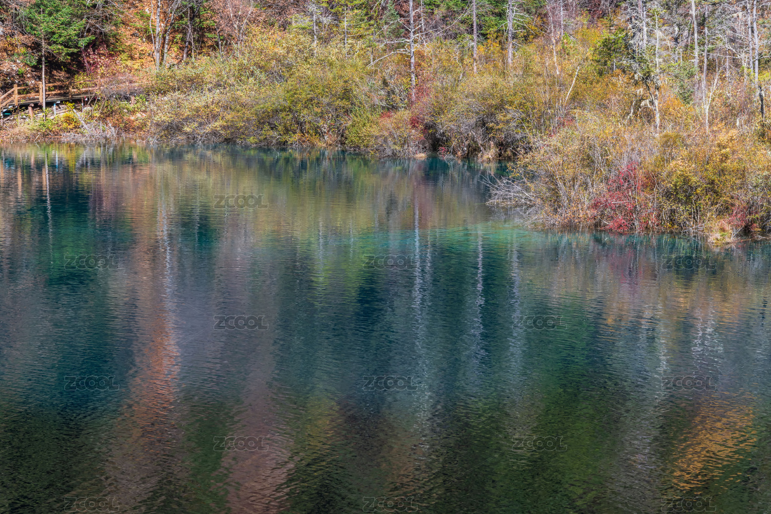 中国四川省阿坝州九寨沟景区秋天的孔雀河道