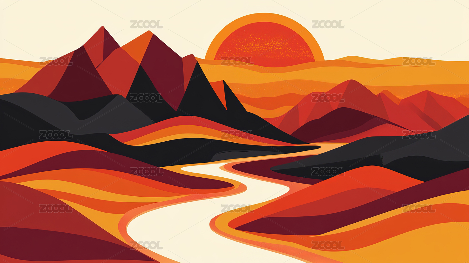 秋天,二十四节气,秋分,插画,AI数字艺术,立秋,自然,高山,宁静,自然美