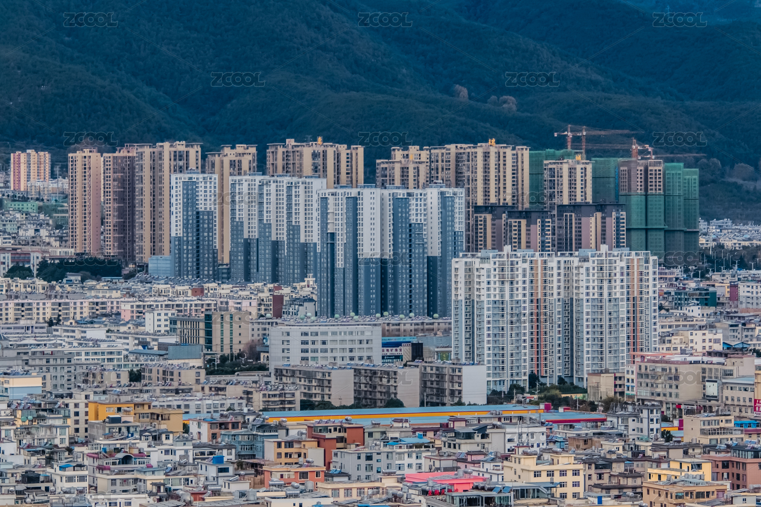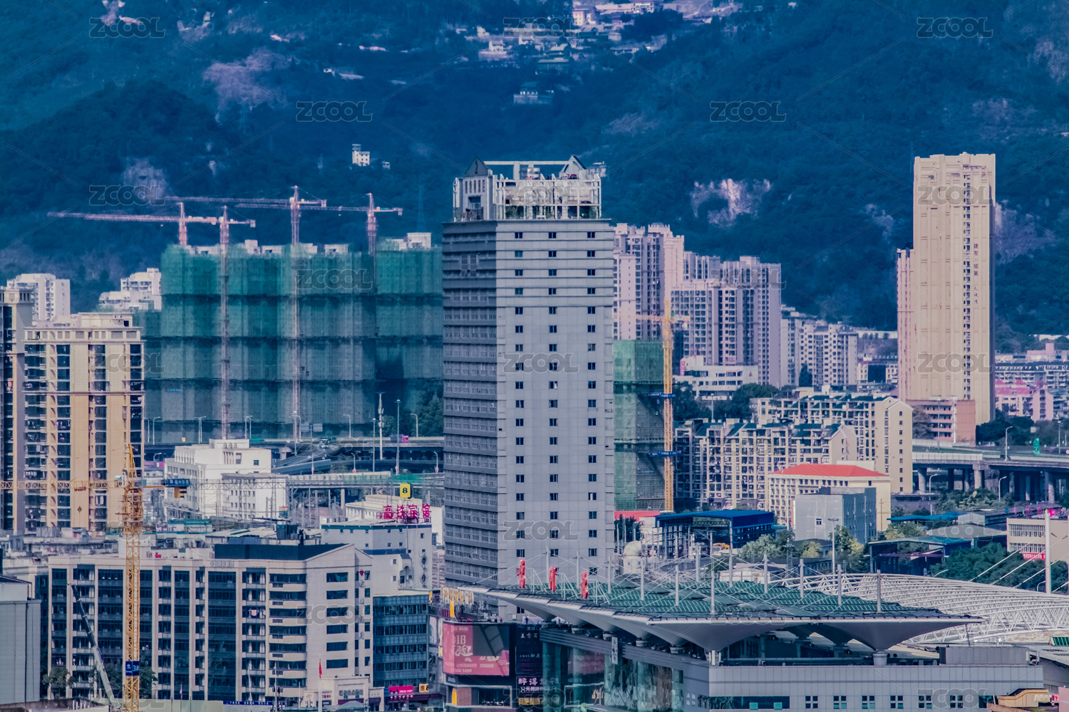 中国福建省福安市山谷中多云天气城区高楼建筑环境景观