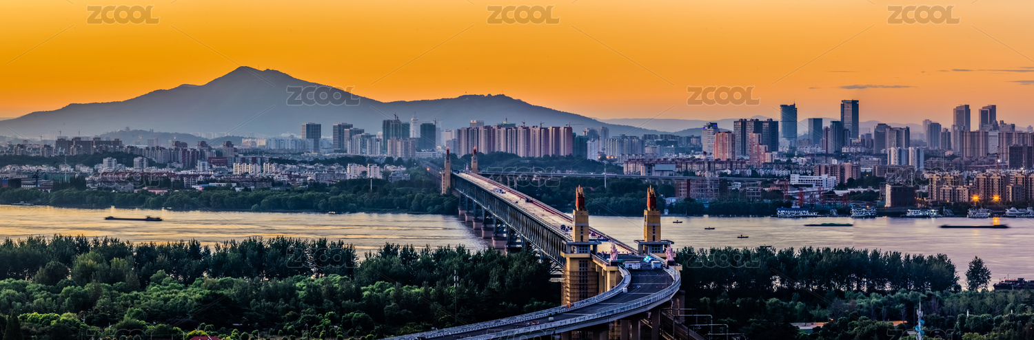 江苏省南京市长江大桥外滩黄昏都市高楼建筑