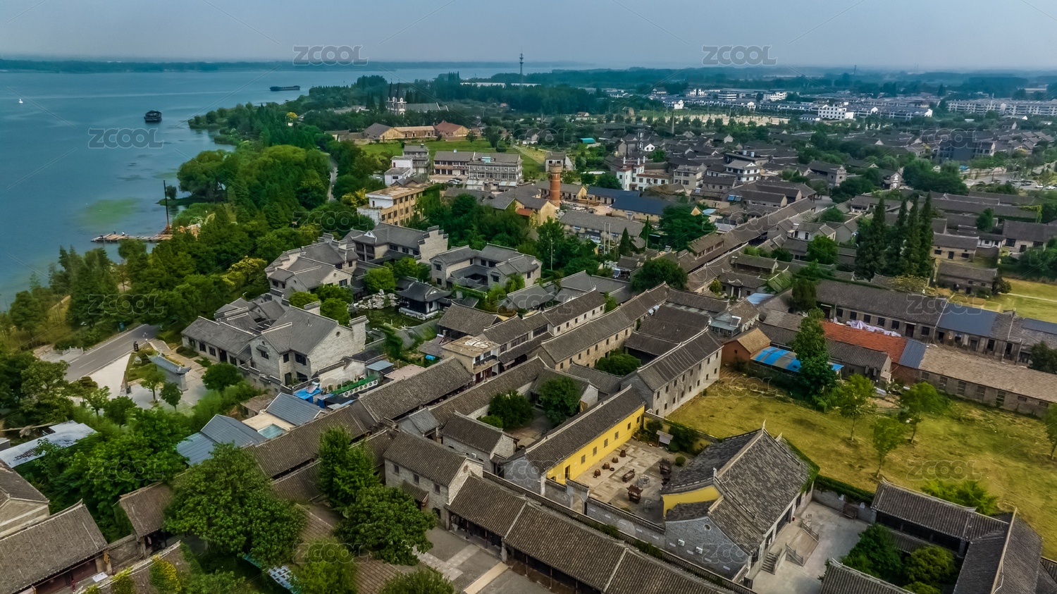 中国江苏省新沂市航拍窑湾古镇园林建筑