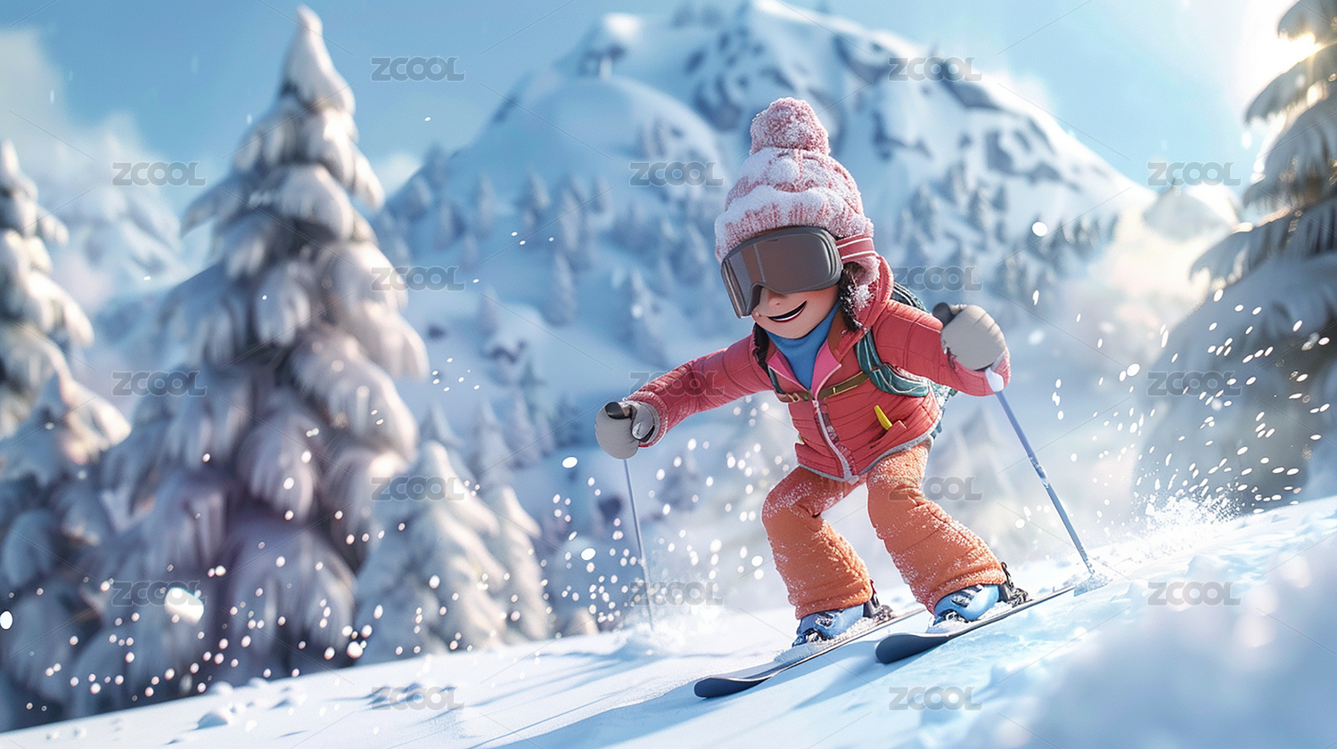 树林,冬天,冬季,积雪,山谷,滑雪,儿童,时尚,女孩,雪