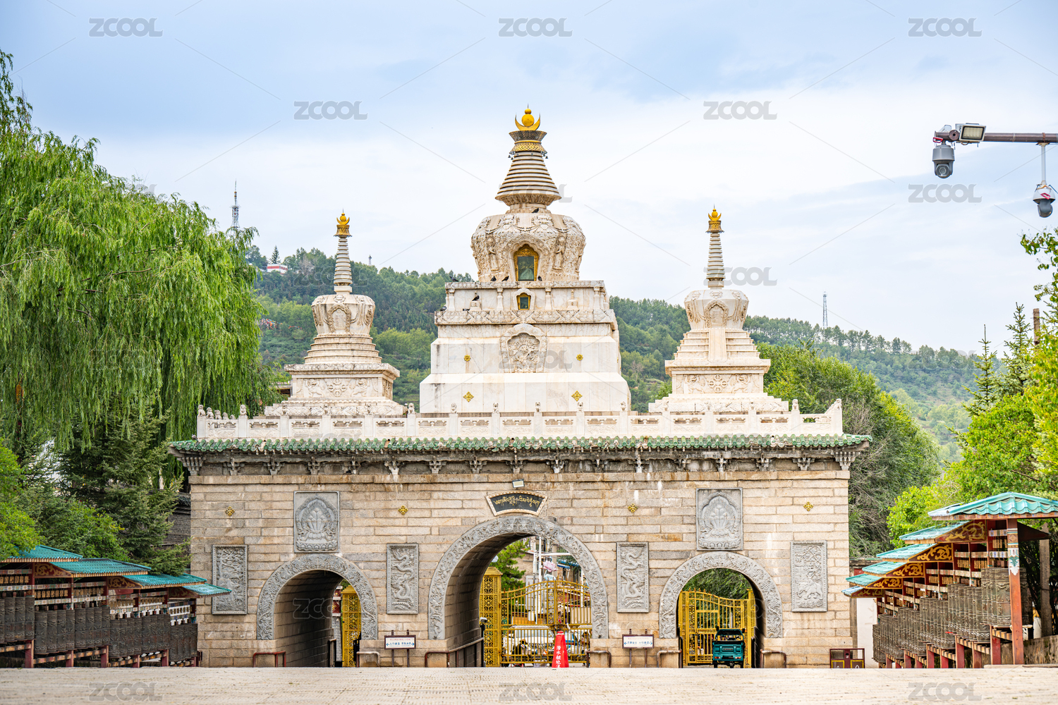 天空下青海省湟中塔尔寺内的古老宗教建筑