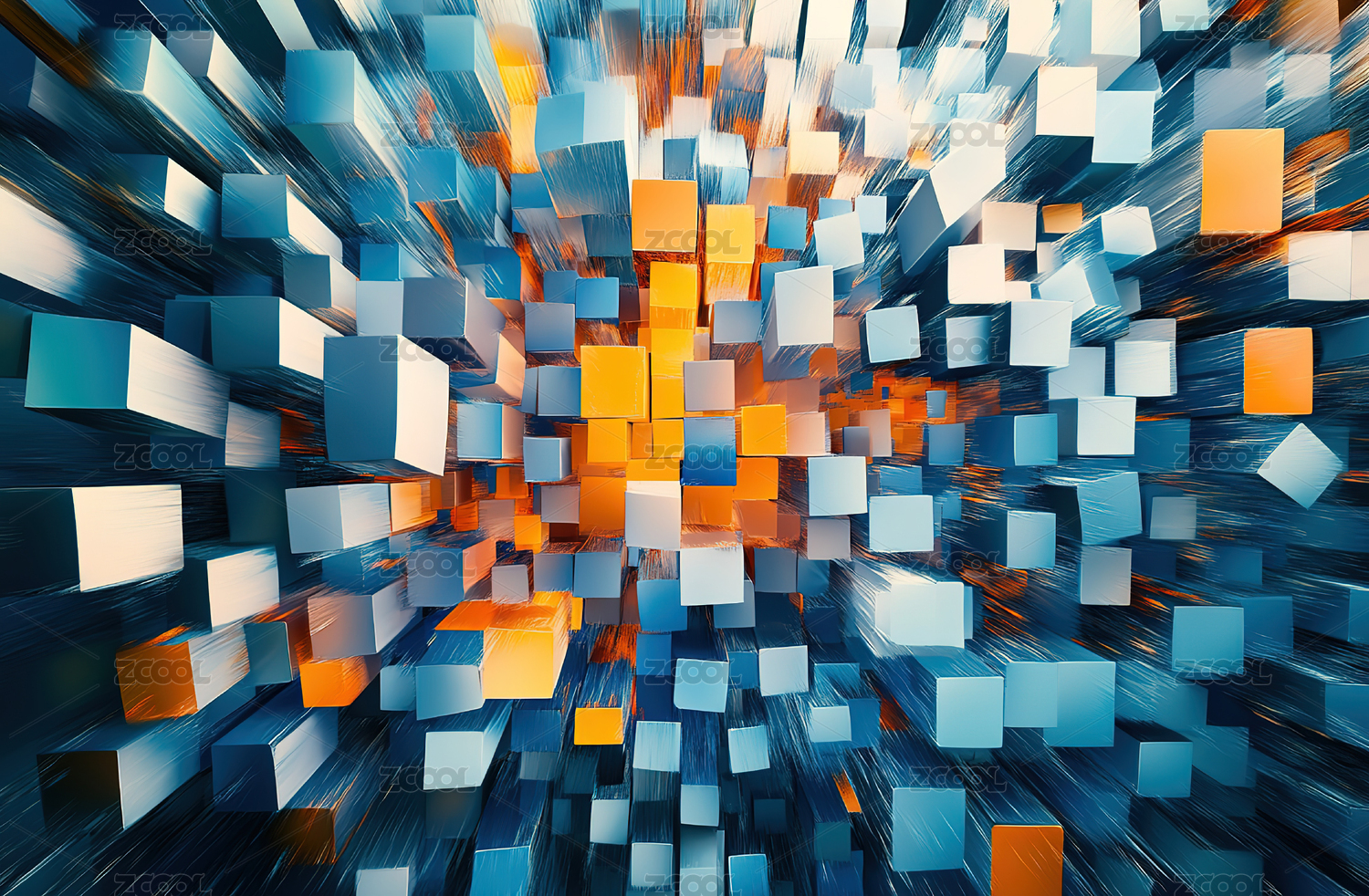 未来,城市,建筑,科技,金属,立方体,反光,蓝色,金色,抽象