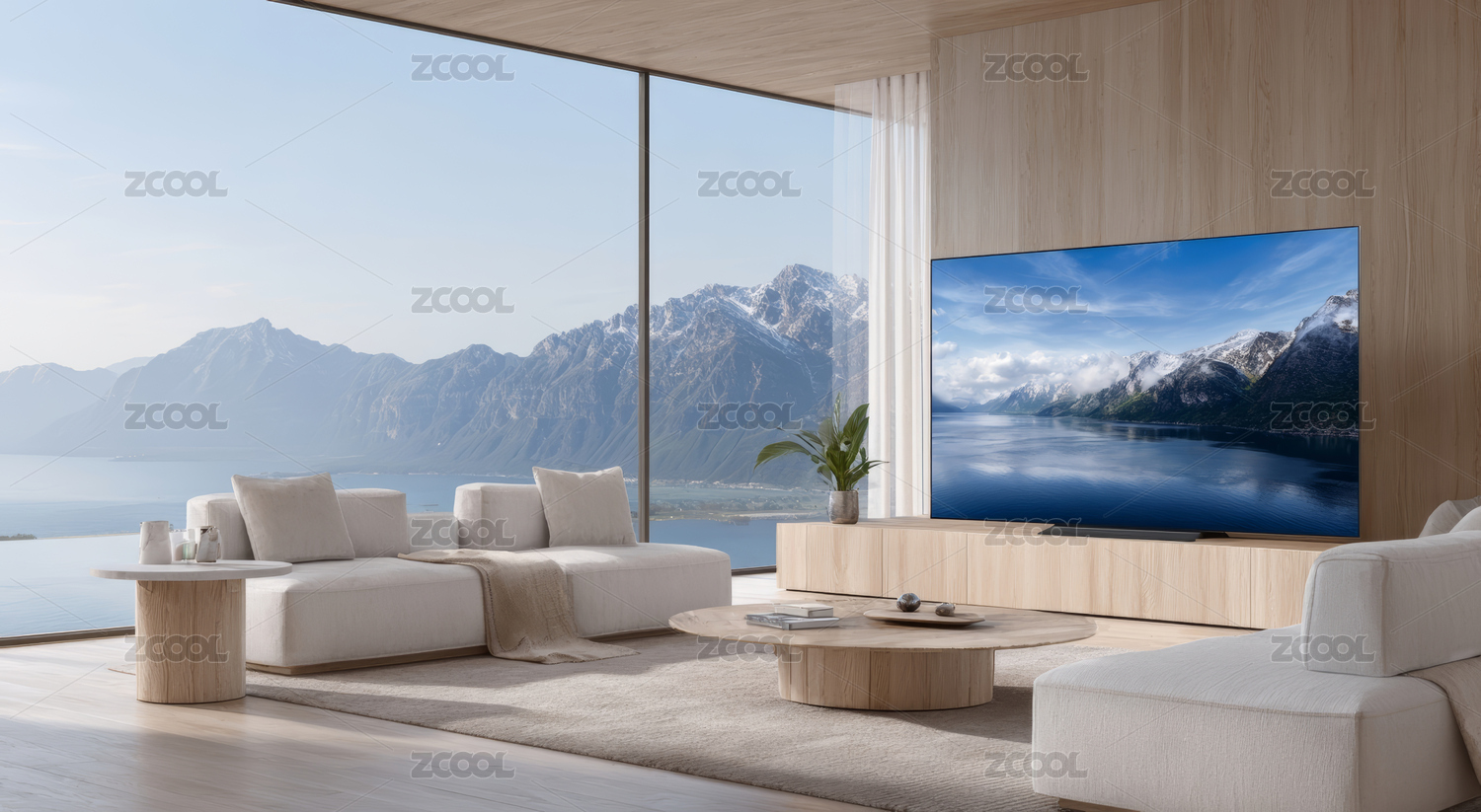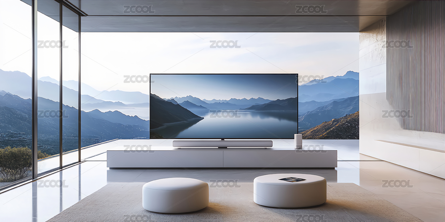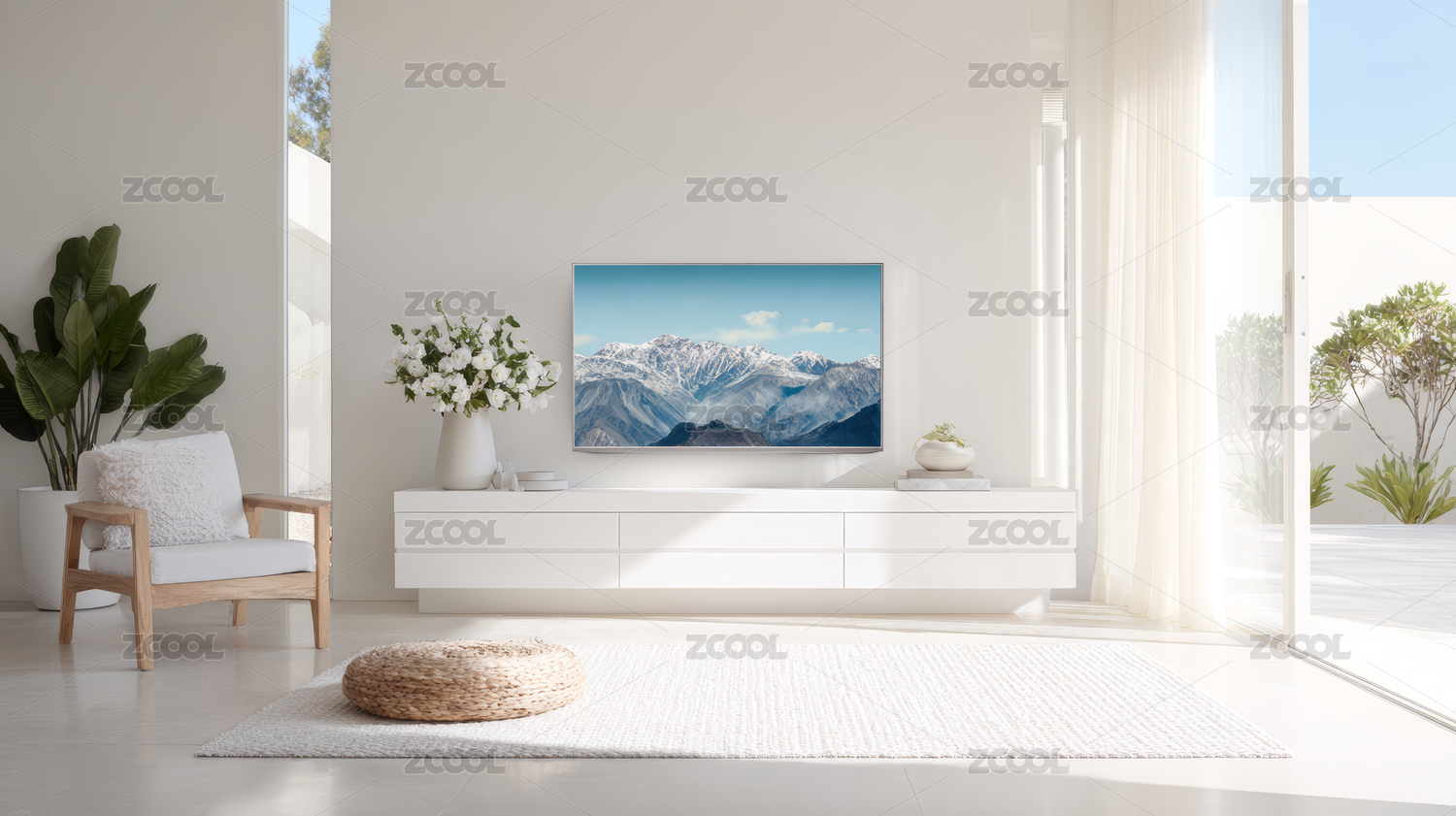 电视,客厅,室内设计,现代风格,木质家具,电视柜,绿色植物,装饰,墙面,电视屏幕