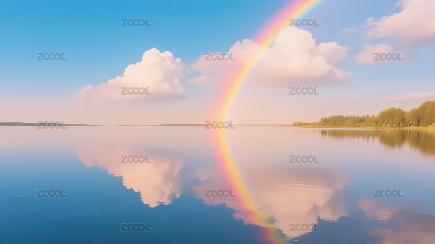 无人,地形,风景,宁静,自然美,日落,彩虹,湖,剪影,水