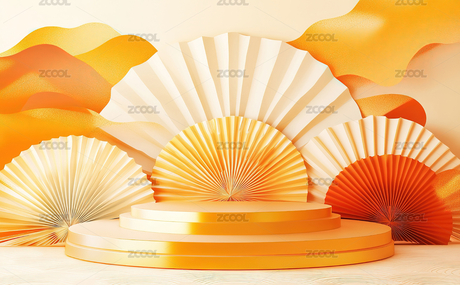 中式折扇圆形舞台背景墙