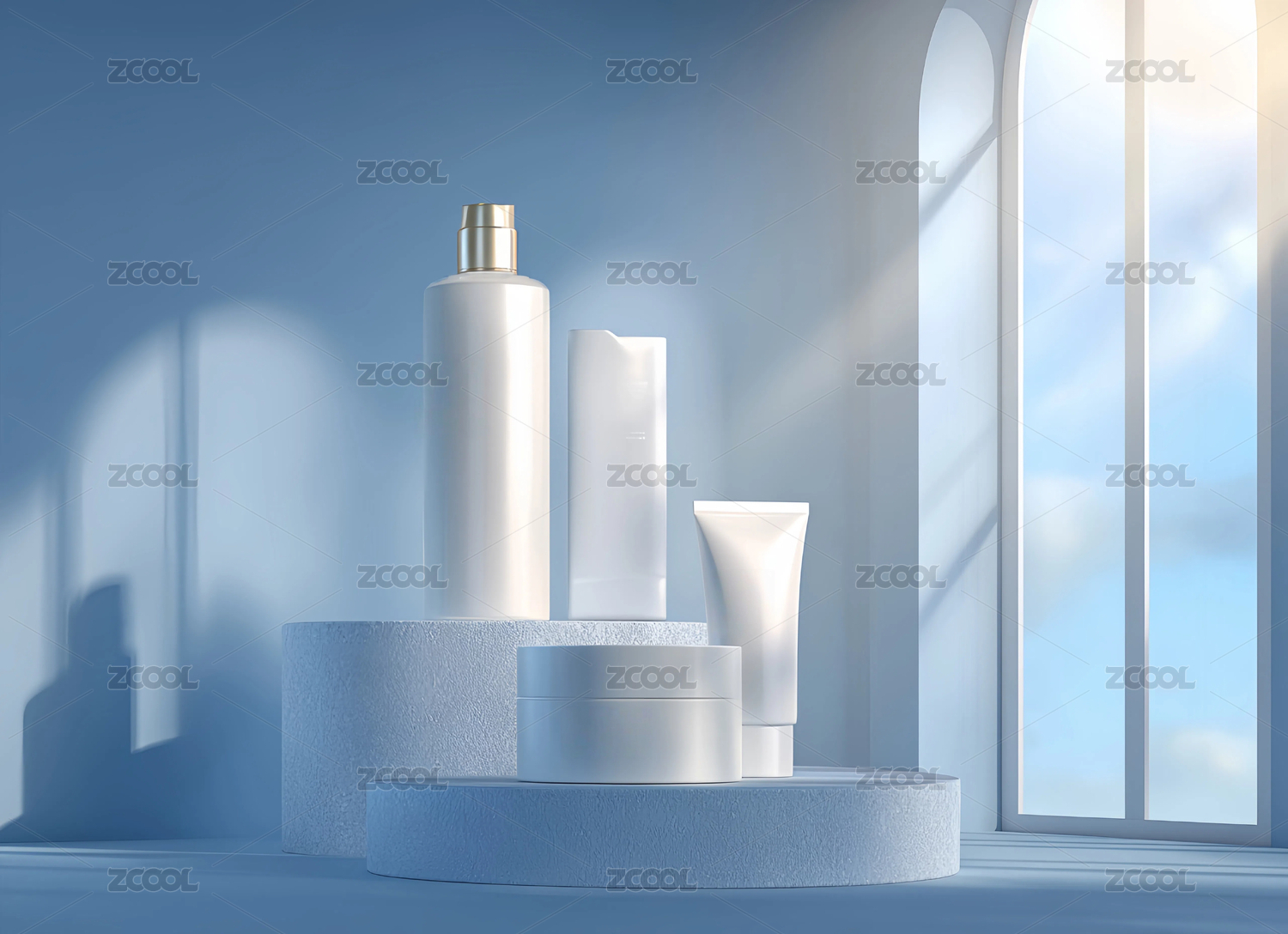 化妆品软管在圆形展台上