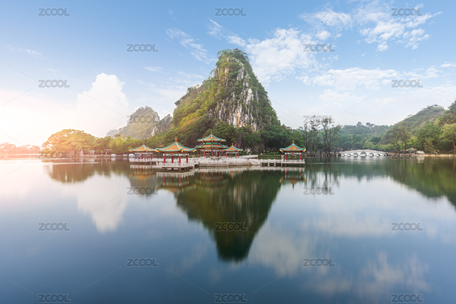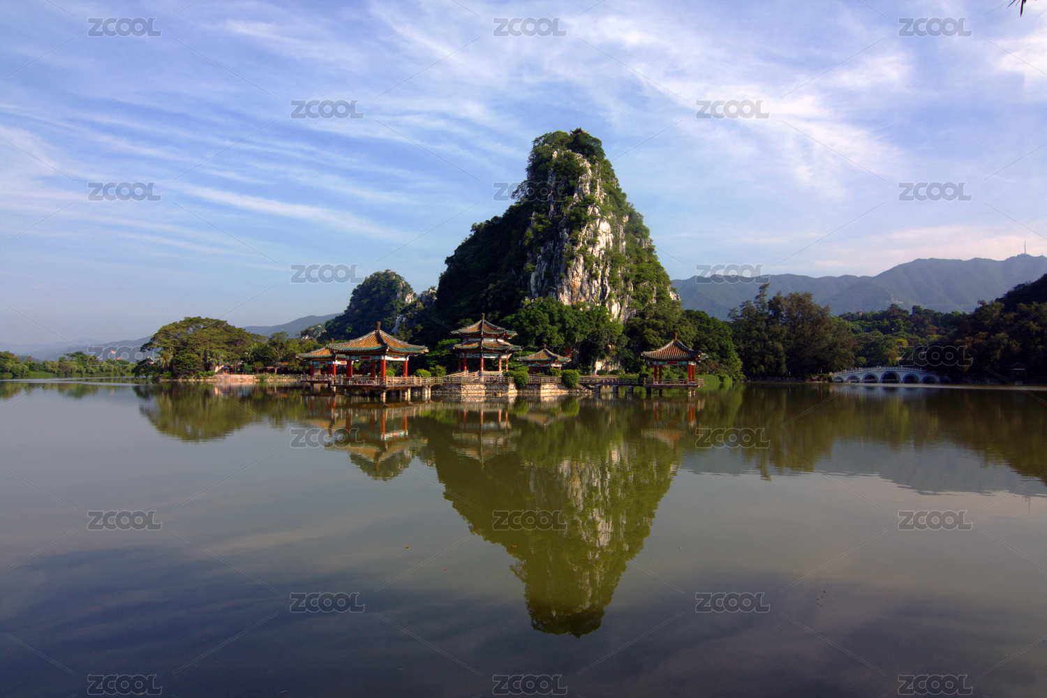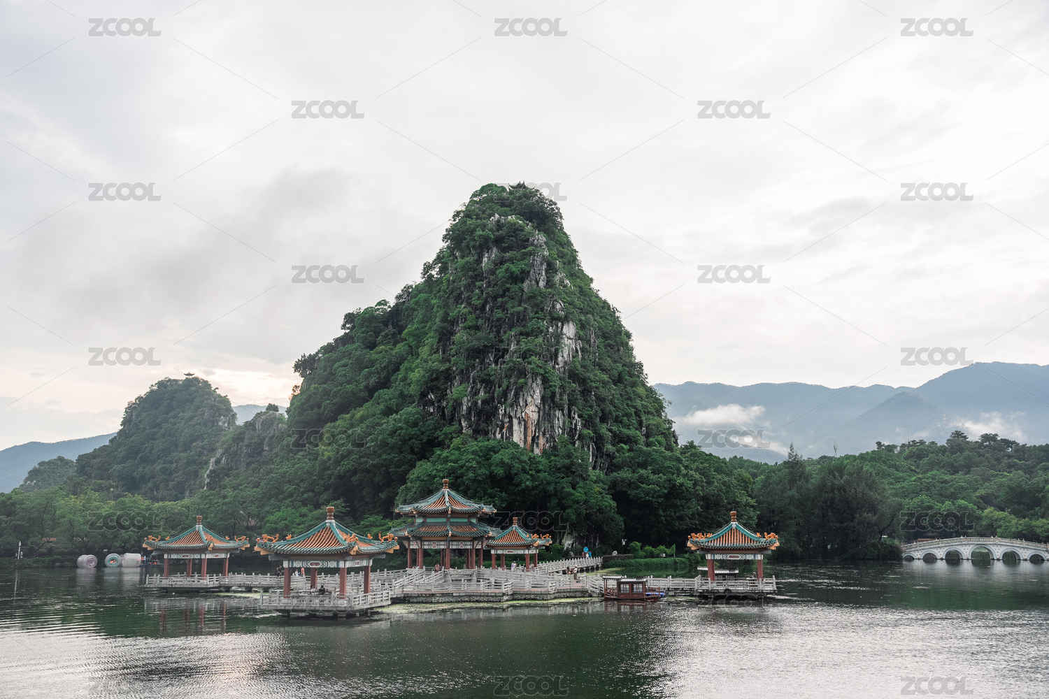 中国广东肇庆七星岩风景区五龙亭和七星桥