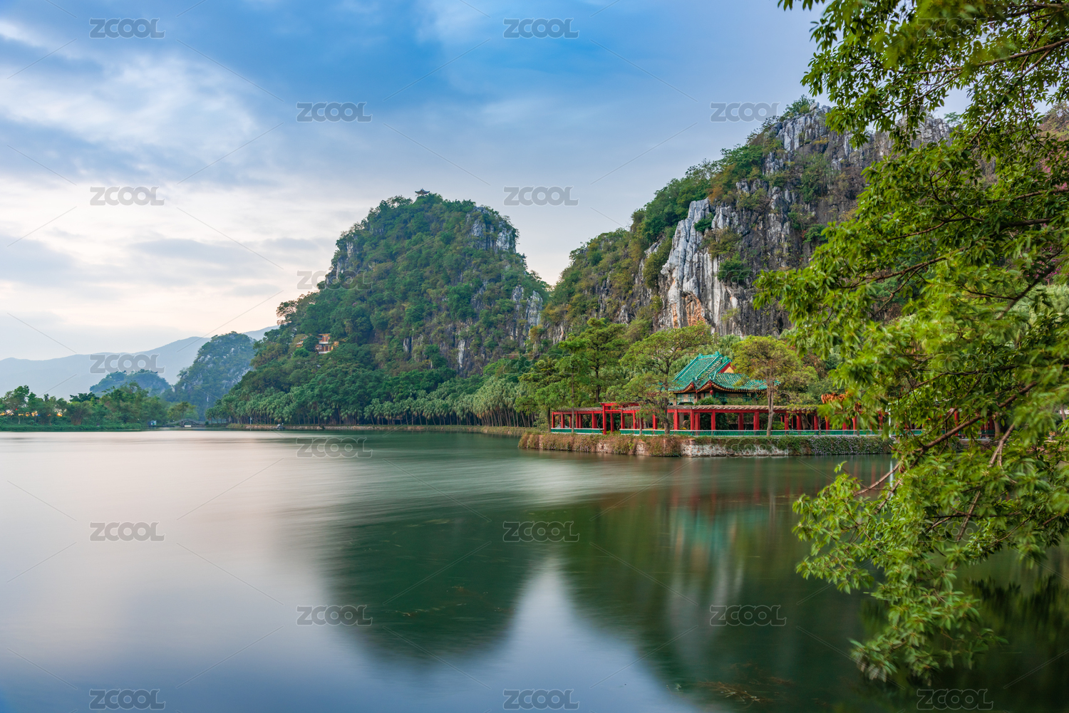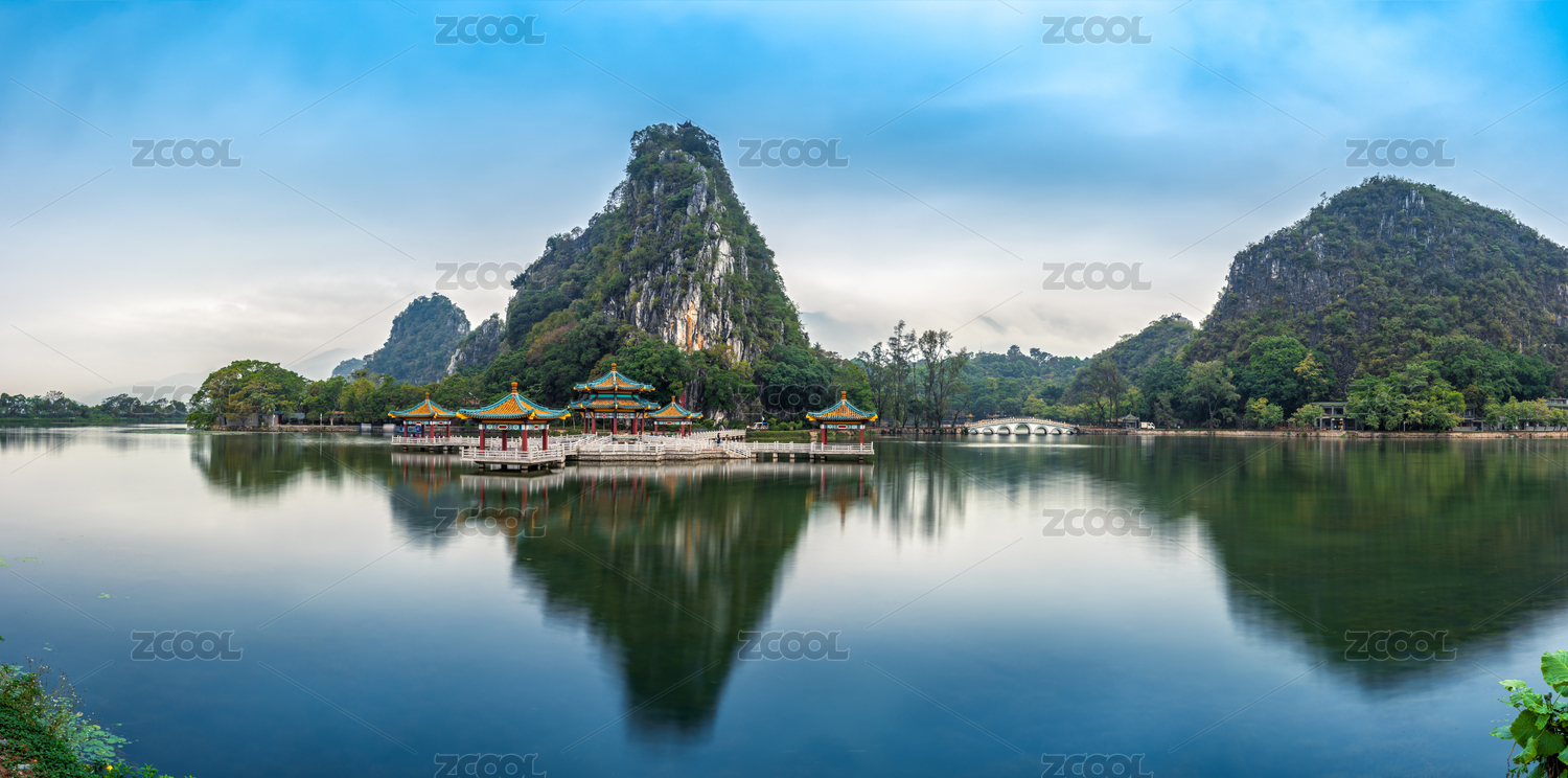 七星岩,七星岩景区,五龙亭,倒影,喀斯特,喀斯特地貌,大湾区,山水,山水风光,平静