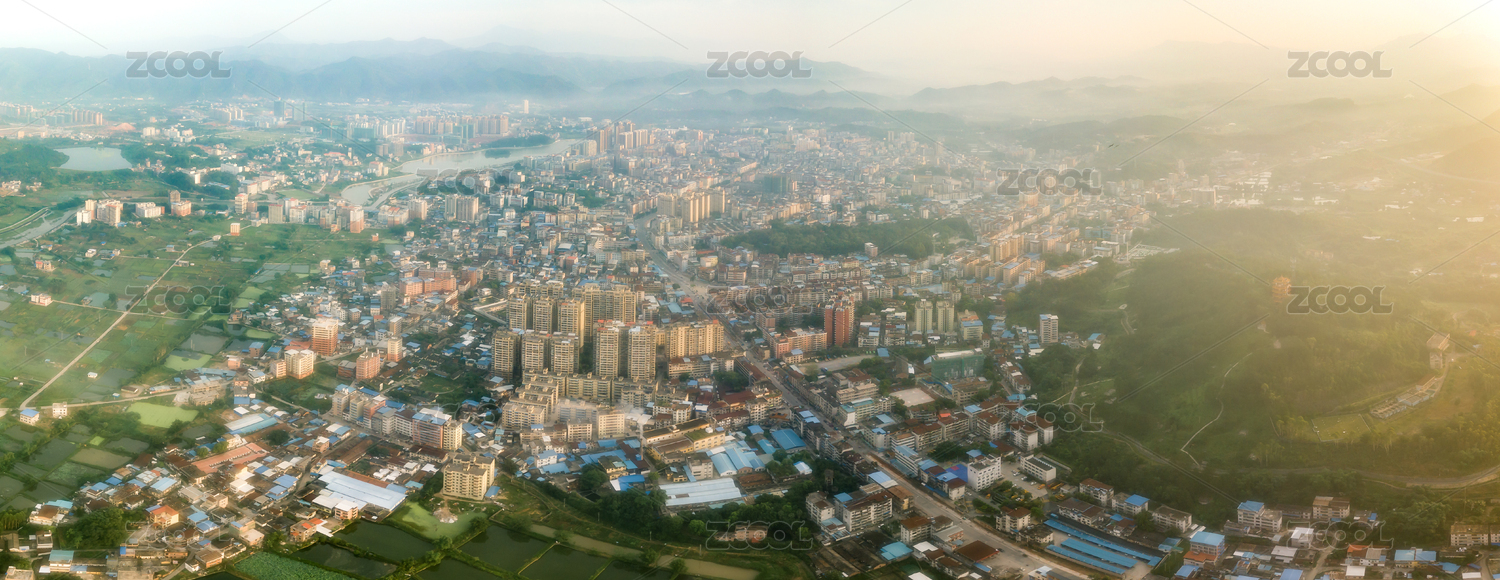 清晨航拍中国广东省韶关市翁源县城龙仙镇日出全景