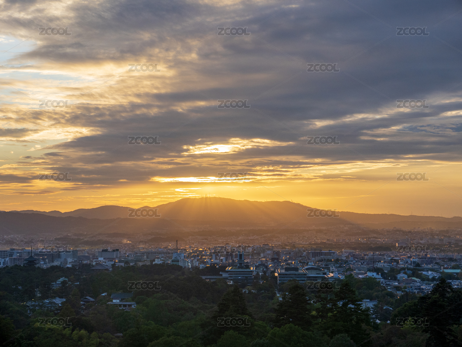 黄昏日落时,日本奈良若草山上俯瞰城市全景