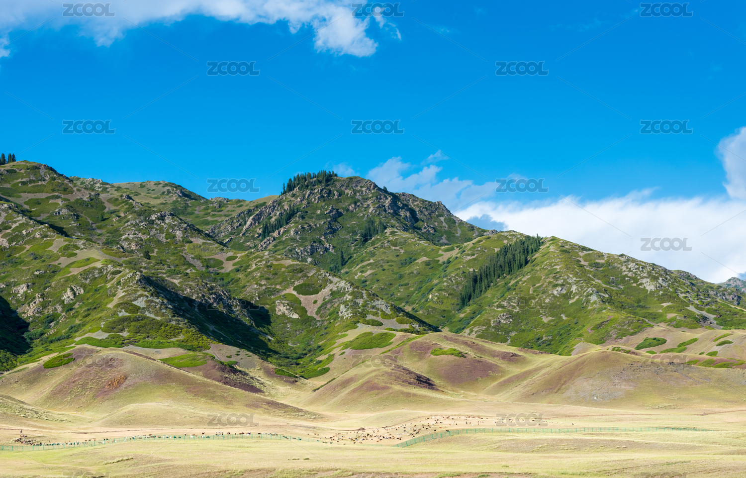 夏季晴天中国新疆伊犁伊昭公路沿线自然风景
