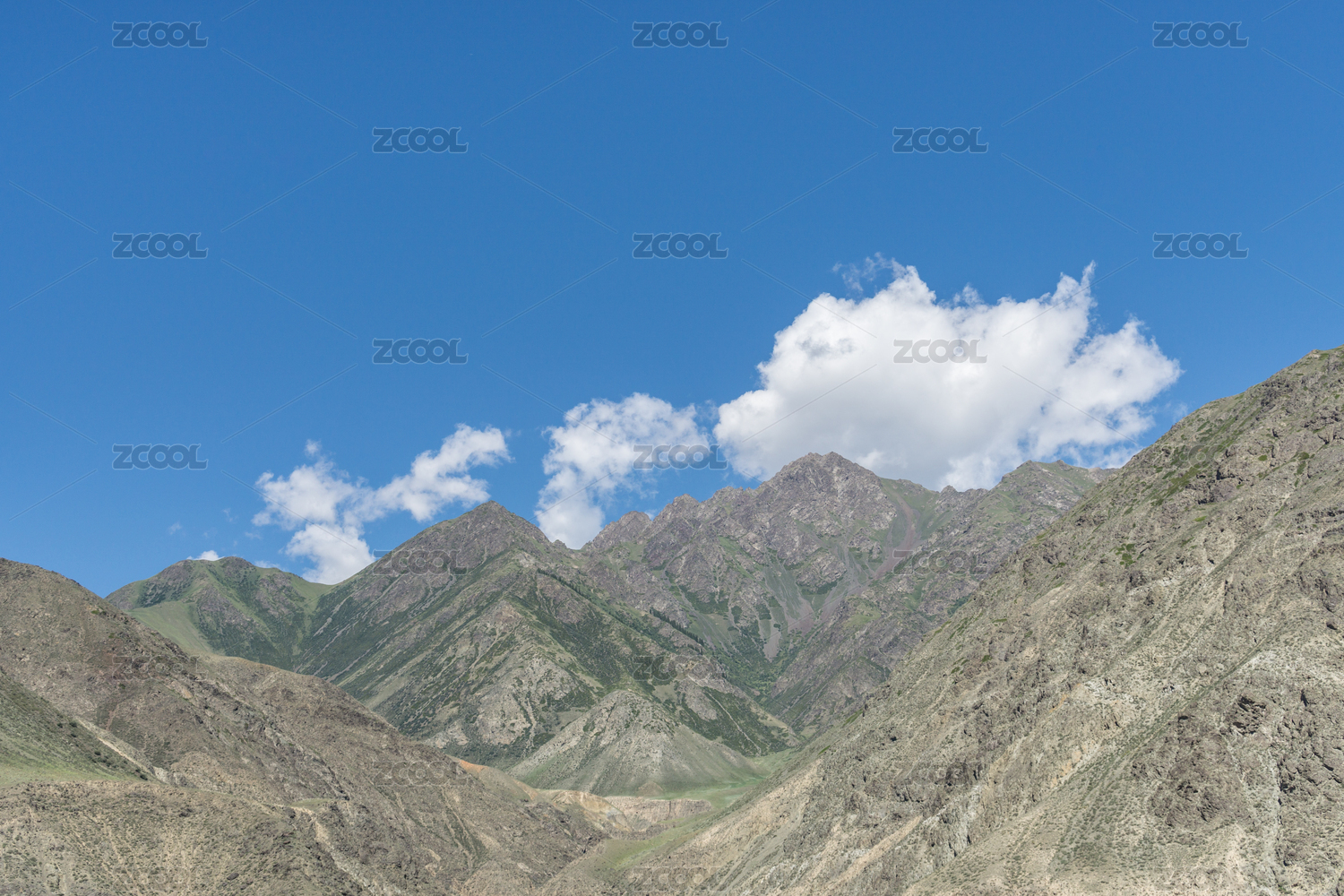 中国新疆夏季蓝天白云下G217独库公路沿途高山戈壁风景