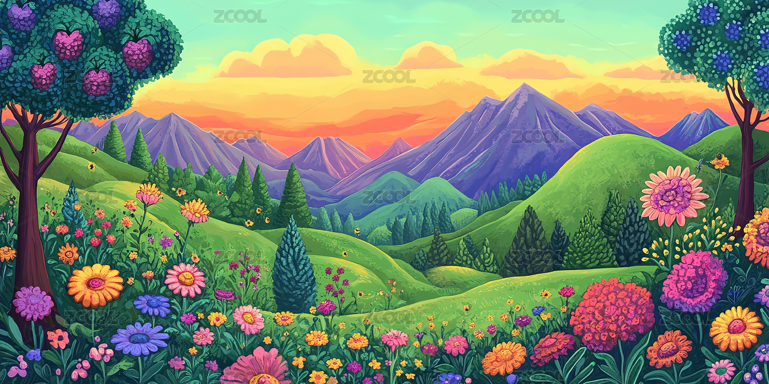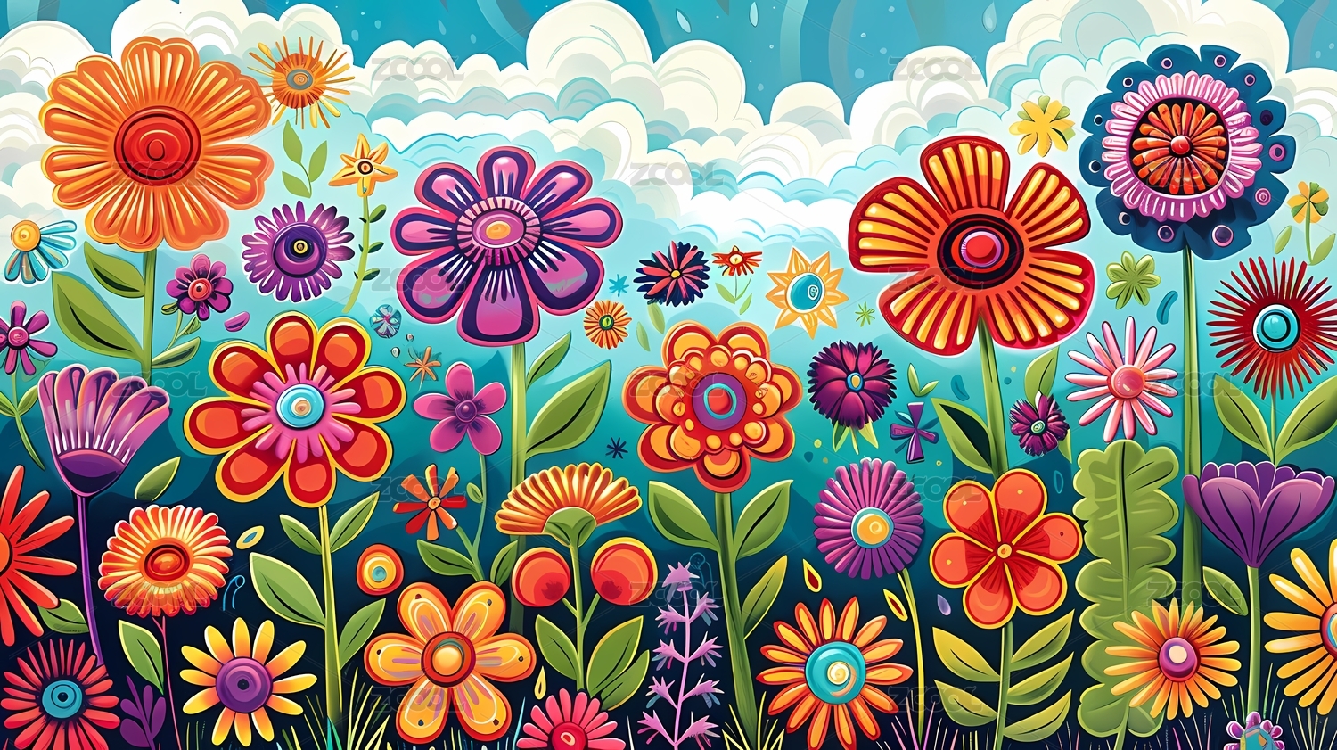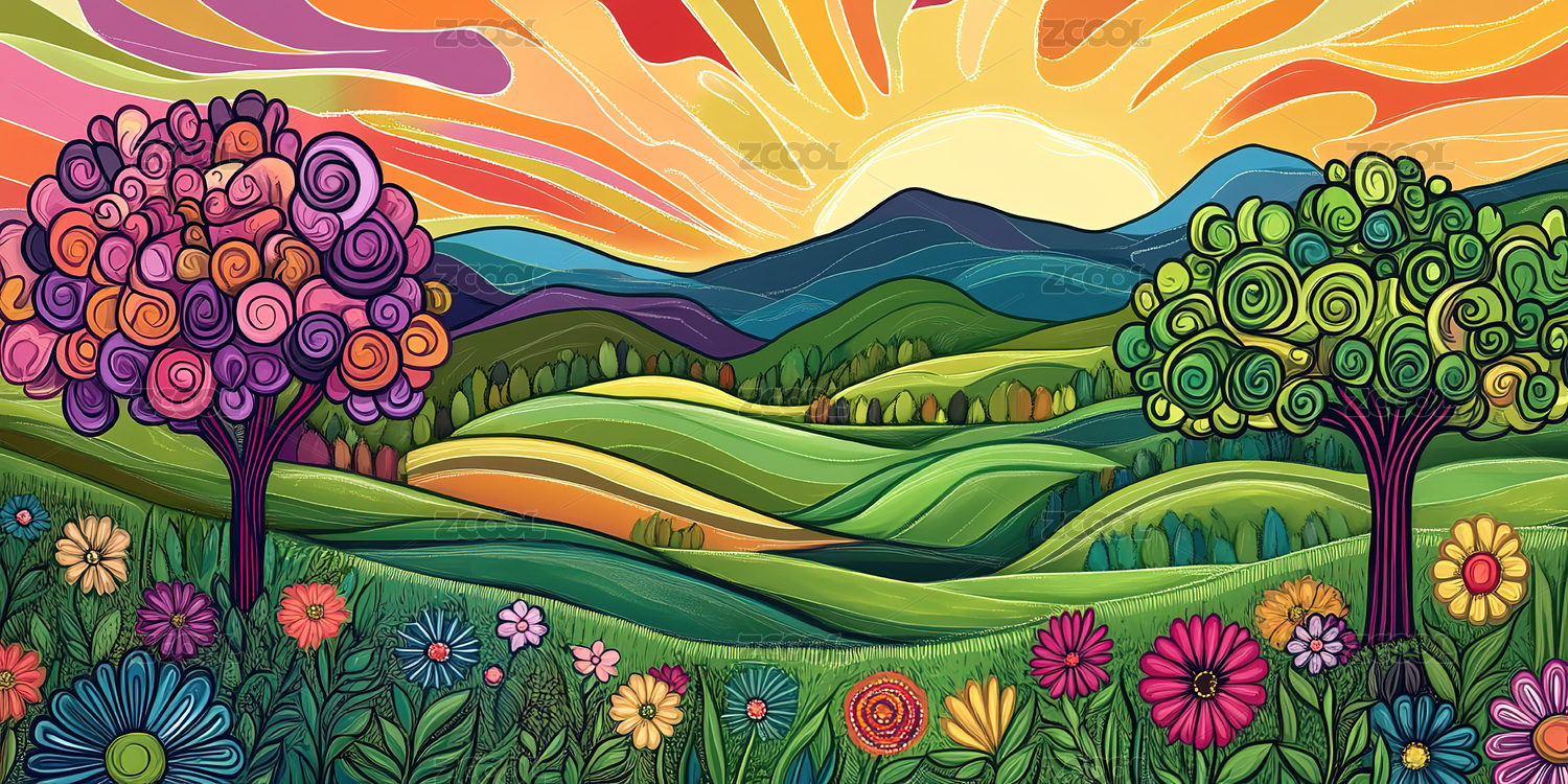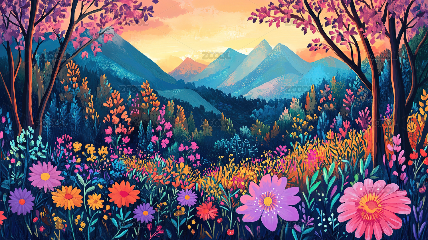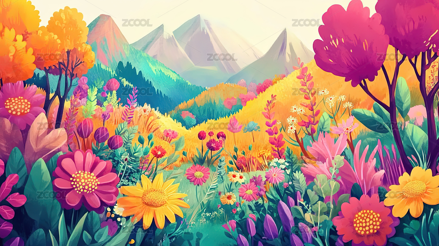 水彩,花卉,花朵,田野,草地,卡通,抽象,绘画,阳光,几何