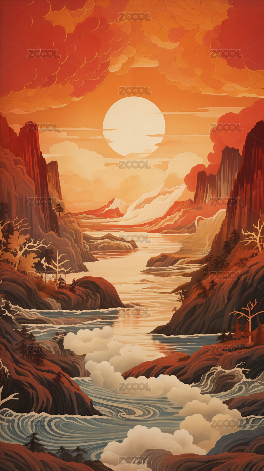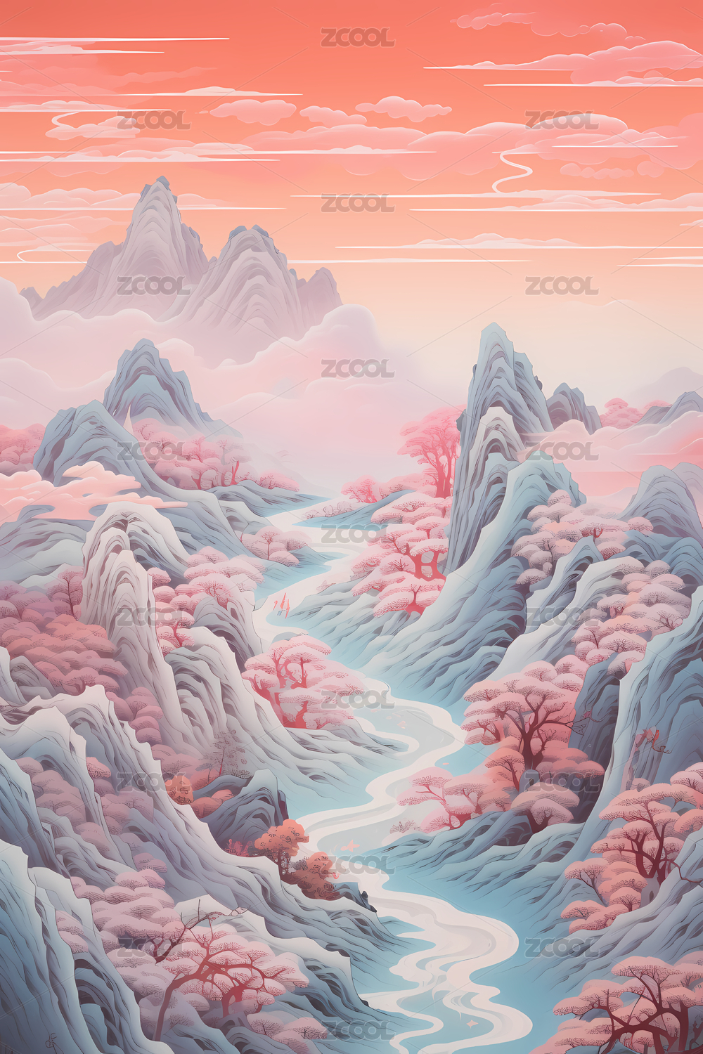 艺术品,多彩,设计,风景,山峦,山,水彩,插画,装饰画,装饰