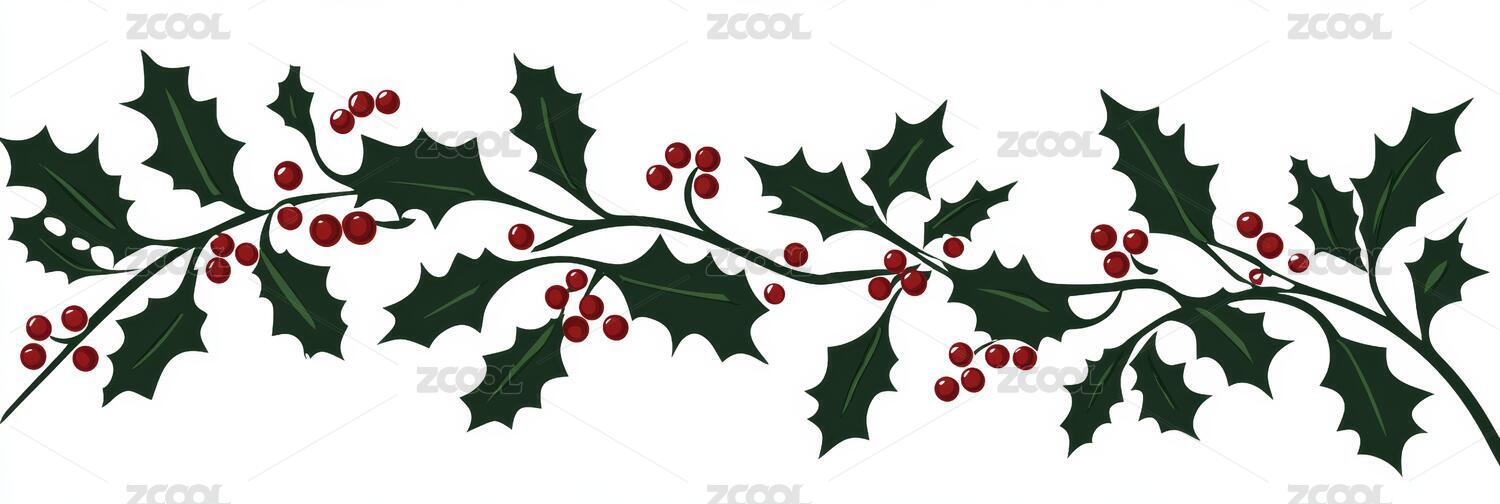 冬青浆果叶子圣诞节装饰元素矢量插画